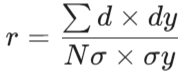 इस सूत्र में r सहसम्बन्ध गुणांक है तथा यह सामान्यतः उस मात्रा की माप है, जिसमें समंग श्रेणी के दोनों चर एक साथ परिवर्तित होते है।