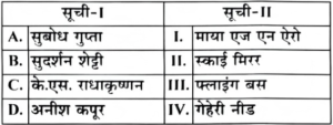 Solution:रामकिंकर के मूर्तिशिल्प की विशिष्टता है अत्यधिक ऊर्जा, प्रचुरता व जीवन्तता क्योंकि वे जीवन के प्रति गहन प्रेम से संतृप्त थे। कथन I और II दोनों सही है।
