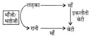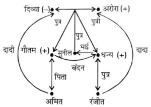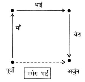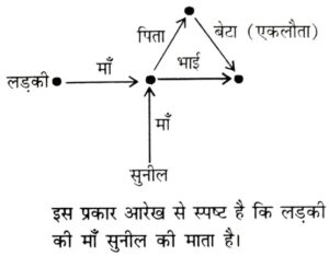 रक्त संबंध Type-II (प्रश्न 101-150)Total Questions: 5031. राशिद की ओर संकेत करते हुए रीमा ने कहा, "उसकी माँ मेरी माँ की एकमात्र पुत्री है"। रीमा राशिद से किस प्रकार संबंधित है ? [रेलवे NTPC CBT स्टेज-I परीक्षा (स्नातक स्तरीय), 07.04.2016 द्वितीय पाली](A) माता(B) पुत्री(C) बहन(D) दादी/नानी(1) A(2) B(3) C(4) DCorrect Answer: (1) ASolution:कथन से स्पष्ट है कि रीमा, राशिद की माता है।32. एक फोटो को देखकर, एक लड़के ने कहा, "वो, मेरे पिताजी की माताजी के इकलौते बेटे की पत्नी है।" लड़के की बुआ (Paternal aunt), का लड़की से क्या रिश्ता है? [रेलवे NTPC CBT स्टेज-I परीक्षा (स्नातक स्तरीय), 07.04.2016 द्वितीय पाली](A) माँ(B) बुआ (Paternal aunt)(C) बहन(D) दादी (Grandmother)(1) A(2) B(3) C(4) DCorrect Answer: (1) ASolution:33. पूर्वी अपनी माँ के भाई के बेटे के रूप में अर्जुन का परिचय करवाती है। अर्जुन पूर्वी से कैसे संबंधित है ? [रेलवे NTPC CBT स्टेज- परीक्षा (स्नातक स्तरीय), 07.04.2016 तृतीय पाली](A) बेटा(B) भतीजा(C) ममेरा भाई(D) मामा(1) D(2) B(3) C(4) ACorrect Answer: (3) CSolution:34. पुरस्कार प्राप्त करते हुए आदमी की ओर इशारा करते हुए सनी ने कहा, "वह मेरे चाचा की बेटी का भाई है।" आदमी सनी का कौन है ? [रेलवे NTPC CBT स्टेज-I परीक्षा (स्नातक स्तरीय), 07.04.2016 तृतीय पाली](A) कजिन(B) ब्रदर-इन-लॉ(C) भतीजा(D) चाचा(1) A(2) B(3) D(4) CCorrect Answer: (1) ASolution:35. एक लड़की की तरफ इशारा करते हुए सुनील ने कहा, "उसकी माँ का भाई मेरी माँ के पिता का एकलौता बेटा है और उसके भाई की केवल एक ही बहन है"। लड़की की माँ का सुनील से क्या रिश्ता है ? [रेलवे NTPC CBT स्टेज-I परीक्षा (स्नातक स्तरीय), 09.04.2016 तृतीय पाली](A) मामी (Maternal Aunt)(B) बहन(C) माँ(D) दादी नानी(1) B(2) A(3) C(4) DCorrect Answer: (3) CSolution:36. लौरा एक लड़के के साथ जा रही थी, जब एक महिला ने उन दोनों के बीच के सम्बन्ध के बारे में प्रश्न किया लौरा ने उत्तर दियाः "मेरे मामा/मौसा और इसके मामा/मौसा के मामा/मौसा/चाचा/ताऊ/फूफा एक ही हैं"। लौरा का लड़के से क्या सम्बन्ध है ? [रेलवे NTPC CBT स्टेज-I परीक्षा (स्नातक स्तरीय), 11.04.2016 प्रथम पाली](A) माँ और बेटा(B) मामी/मौसी और भांजा/भतीजा(C) नानी और नाती(D) निर्धारित नहीं किया जा सकता(1) A(2) B(3) D(4) CCorrect Answer: (2) BSolution:37. एक तस्वीर में एक लड़के की ओर इशारा करते हुए रानी ने कहा, "उसकी माँ की इकलौती बेटी मेरी माँ है।" रानी उस लड़के से कैसे संबंधित है ? [रेलवे NTPC CBT स्टेज-I परीक्षा (स्नातक स्तरीय), 11.04.2016 प्रथम पाली](A) पत्नी(B) बहन(C) भतीजी(D) भतीजा(1) B(2) A(3) C(4) DCorrect Answer: (3) CSolution:38. राम ने कहा, "यह लड़की मेरे माँ के पोते की पत्नी है।" राम उस लड़की का कौन है ? [रेलवे NTPC CBT स्टेज-I परीक्षा (स्नातक स्तरीय), 11.04.2016 प्रथम पाली](A) पति(B) पिता(C) ससुर(D) दादा जी(1) B(2) A(3) C(4) DCorrect Answer: (3) CSolution:39. निम्नलिखित जानकारी को ध्यानपूर्वक पढ़ें और इसके नीचे दिए गए प्रश्न का उत्तर दें। [रेलवे NTPC CBT स्टेज-I परीक्षा (स्नातक स्तरीय), 12.04.2016 द्वितीय पाली]श्वेता की माँ यमुना की बहन है। यमुना का हारिनी नाम की एक बेटी है। हारिनी को अपनी माँ की माँ कमला से अत्यधिक लगाव है।श्वेता कम