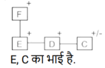 उपरोक्त के आधार पर, यदि ‘E ÷ F × D − C’ है, तो E का C से क्‍या संबंध है?