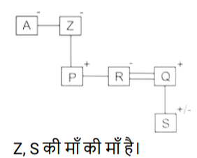 9. एक निश्चित कूट भाषा में, 'A + B' का अर्थ है 'A, B की पत्नी है'; 'A – B' का अर्थ है 'A, B की बहन है'; 'A × B' का अर्थ है 'A, B का पिता है' और 'A ÷ B' का अर्थ है 'A, B का भाई है'। [Higher Secondary 25/06/2024 (Shift - 2)]