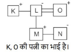 उपरोक्त के आधार पर, यदि 'K - L ✕ M - N + O' है, तो K, O से किस प्रकार संबंधित है?