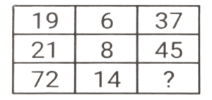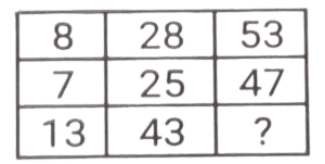 (13, 43, ?) :- 13 × 3 + 4 = 43 , 43 × 2 - 3 = 83
