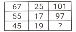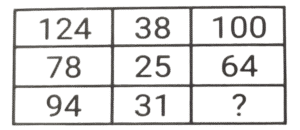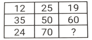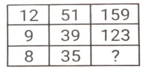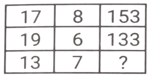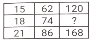 Solution:पहली पंक्ति में :- (15 × 4) + 2 = 60 + 2 = 62 , (62 × 2) - 4 = 124 - 4 = 120 दूसरी पंक्ति में : - (18 × 4) + 2 = 72 + 2 = 74, (74 × 2) - 4 = 148 - 4 = 144 तीसरी पंक्ति में : - (21 × 4) + 2 = 84 + 2 = 86, (86 × 2) - 4 = 172 - 4 = 168