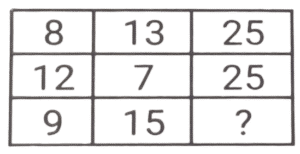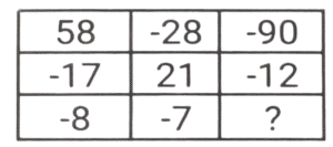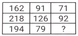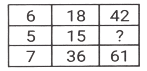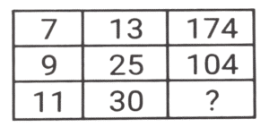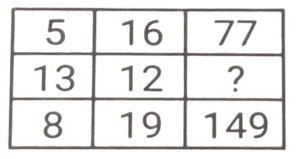 लुप्त संख्या (भाग-III)Total Questions: 501. हल कीजिए : [SSC CHSL 09/06/2022 (Afternoon)](a) 38(b) 45(c) -40(d) -35Correct Answer: (b) 45Solution:पहली पंक्ति में :- 58 + (-28) = 30 × (- 3) = - 90 दूसरी पंक्ति में :- - 17 + 21 = 4 × (- 3) = - 12 उसी प्रकार, तीसरी पंक्ति में :- - 8 + (-7) = - 15 × (- 3) = 452. हल कीजिए : [SSC CHSL 09/06/2022 (Afternoon)](a) 19(b) 17(c) 15(d) 18Correct Answer: (b) 17Solution:तर्क :- (पहली संख्या/ + 2 दूसरी संख्या/3) = तीसरी संख्या इसी प्रकार पहली पंक्ति में : - 32/2 + 51/3 = 16 + 17 = 33 इसी प्रकार दूसरी पंक्ति में : - 28/2 + 33/3 = 14 + 11 = 25 इसी प्रकार तीसरी पंक्ति में :- 16/2 + 27/3 = 8 + 9 = 173. हल कीजिए : [SSC CHSL 09/06/2022 (Evening)](a) 129(b) 127(c) 125(d) 120Correct Answer: (a) 129Solution:2³ + 3² = 8 + 9 = 17 4³ + 6² = 64 + 36 = 100 उसी प्रकार, 5³ + 2² = 1294. हल कीजिए : [SSC CHSL 10/06/2022 (Morning)](a) 157(b) 153(c) 151(d) 155Correct Answer: (b) 153Solution:तर्क :- (a × b) - 3 = c (5 × 16) - 3 = 77 , (13 × 12) - 3 = 153 (8 × 19) - 3 = 1495. हल कीजिए : [SSC CHSL 10/06/2022 (Afternoon)](a) 36(b) 30(c) 16(d) 49Correct Answer: (a) 36Solution:(13 - 8) = 5 = 5² = 25 (7 - 12) = - 5 = (- 5²) = 25 इसी प्रकार, (15 - 9) = 6 = 6² = 366. हल कीजिए : [SSC CHSL 10/06/2022 (Afternoon)](a) 122(b) 125(c) 115(d) 109Correct Answer: (c) 115Solution:तर्क :- (b + c) = a 91 + 71 162, 126 + 92 = 218 इसी प्रकार, 79 + ? = 194 , ? = 1157. हल कीजिए : [SSC CGL 11/04/2022 (Afternoon)](a) 431(b) 335(c) 100(d) 129Correct Answer: (a) 431Solution:तर्क :- पंक्ति के अनुसार चलने पर (पहली संख्या)³- (दूसरी संख्या)² = तीसरी संख्या (7)³ - (13)² = 174 (9)³ - (25)² = 104 (11)³ - (30)² = 4318. हल कीजिए : [SSC CGL 11/04/2022 (Evening)](a) 30(b) 53(c) 25(d) 45Correct Answer: (a) 30Solution:तर्क (पंक्ति में) :- (a)² + b/3 = c (6, 18, 42) → 6² + 18/3 = 36 + 6 = 42 इसी तरह, (5, 15, ?) → 5² + 15/3 = 25 + 5 = 309. हल कीजिए : [SSC CGL 12/04/2022 (Morning)](a) 13(b) 22(c) 18(d) 25Correct Answer: (a) 13Solution:तर्क (कॉलम के अनुसार चलते हुए) :- (दो संख्याओं का योग) × (दो संख्याओं का अंतर) (14 + 11) × (14 - 11) = 75 (16 + 15) × (16 - 15) = 31 (13 + 9) × (13 - 9) = 8810. हल कीजिए : [SSC CGL 12/04/2022 (Afternoon)](a) 15(b) 21(c) 38(d) 30Correct Answer: (b) 21Solution:तर्क :- कॉलम के अनुसार चलते हुए: (पहला नंबर - तीसरा नंबर) + दूसरा नंबर = चौथा नंबर (18 - 8) + 7 = 17, (24 - 11) + 8 = 21 (19 - 14) + 9 = 14Submit Quiz12345Next »