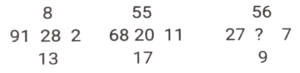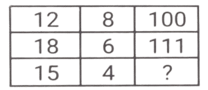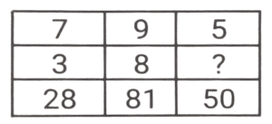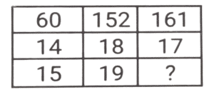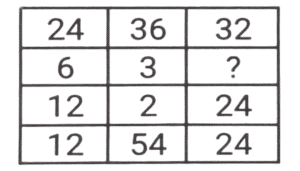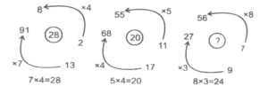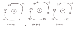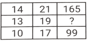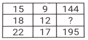 लुप्त संख्या (भाग-III)Total Questions: 5011. हल कीजिए : [SSC CGL 12/04/2022 (Evening)](a) 10(b) 15(c) 18(d) 29Correct Answer: (c) 18Solution:तर्क :- कॉलम की पहली दो संख्याओं और अंतिम दो संख्याओं का गुणनफल बराबर है। कॉलम 1 :- 24 × 6 = 12 × 12 कॉलम 2 :- 36 × 3 = 2 × 54 मान लीजिए पूछी गई संख्या = y 3 कॉलम के लिए: 32 × y = 24 × 24 , अतः y = 1812. हल कीजिए : [SSC CGL 13/04/2022 (Afternoon)](a) 188(b) 255(c) 180(d) 224Correct Answer: (c) 180Solution:(15 + 9) × (15 - 9) = 144 (18 + 12) × (18 - 12) = 180 (22 + 17) × (22 - 17) = 19513. हल कीजिए : [SSC CGL 13/04/2022 (Evening)](a) 153(b) 157(c) 155(d) 151Correct Answer: (a) 153Solution:पहली पंक्ति के लिए :- 5 × 16 = 80 ⇒ 80 - 3 = 77 दूसरी पंक्ति के लिए :- 8 × 19 = 152 ⇒ 152 - 3 = 149 तीसरी पंक्ति के लिए :- 13 × 12 = 156 ⇒ 156 - 3 = 15314. हल कीजिए : [SSC CGL 18/04/2022 (Morning)](a) 102(b) 108(c) 62(d) 78Correct Answer: (c) 62Solution:तर्क (पंक्ति में) :- [(पहला अंक × दूसरा अंक + (दूसरा अंक ÷ 2 )] = तीसरी अंक जैसे (12 × 8) + (8 ÷ 2) = 100 इसलिए (15 × 4) + (4 ÷ 2) = 6215. हल कीजिए : [SSC CGL 18/04/2022 (Afternoon)](a) 9(b) 5(c) 7(d) 8Correct Answer: (a) 9Solution:तर्क (कॉलम में) :- पहली संख्या × (दूसरी संख्या + 1) = तीसरी संख्या 7 × (3 + 1) = 28, 9 × (8 + 1) = 81 5 × (x + 1) = 50 इसलिए x = 916. हल कीजिए : [SSC CGL 18/04/2022 (Evening)](a) 23(b) 13(c) 19(d) 7Correct Answer: (a) 23Solution:15 × (14 - 10) = 60 19 × (18 - 10) = 152, 23 × (17 - 10) = 16117. हल कीजिए : [SSC CGL 19/04/2022 (Morning)](a) 9(b) 11(c) 10(d) 8Correct Answer: (b) 11Solution:18. हल कीजिए : [SSC CGL 19/04/2022 (Afternoon)](a) 20(b) 24(c) 30(d) 18Correct Answer: (b) 24Solution:19. हल कीजिए : [SSC CGL 19/04/2022 (Evening)](a) 156(b) 140(c) 120(d) 175Correct Answer: (b) 140Solution:तर्क (पंक्ति में) :- (पहला पद +1) × [(दूसरा पद + 1) ÷ 2] = तीसरी संख्या (14 + 1) × [(21 + 1) ÷ 2] = 165 उसी प्रकार, (13 + 1) × [(19 + 1) ÷ 2] = 14020. हल कीजिए : [SSC CGL 20/4/2022 (Morning)](a) 48(b) 61(c) 35(d) 29Correct Answer: (b) 61Solution:तर्क (कॉलम में) :- (पहली संख्या × दूसरी संख्या) - 2 = तीसरी संख्या, (9 × 5) - 2 = 43 (7 × 4) - 2 = 26 (9 × 7) - 2 = 61Submit Quiz« Previous12345Next »