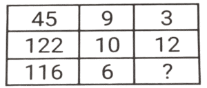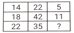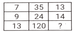 लुप्त संख्या (भाग-III)Total Questions: 5041. हल कीजिए : [SSC CGL 17/08/2021 (Afternoon)](a) 31(b) 27(c) 29(d) 33Correct Answer: (c) 29Solution:तर्क :- (3 × 5) - (2 × 2) = 11 (5 × 5) - (2 × 7) = 11 इसी तरह, (13 × 5) - (18 × 2) = 2942. हल कीजिए : [SSC CGL 18/08/2021 (Morning)](a) 155(b) 217(c) 266(d) 93Correct Answer: (b) 217Solution:तर्क:- प्रत्येक कॉलम में [a × b = c] 3 × 23 = 69 , 5 × 27 = 135 इसी तरह, 7 × 31 = 21743. हल कीजिए : [SSC CGL 18/08/2021 (Evening)](a) 50(b) 55(c) 45(d) 40Correct Answer: (c) 45Solution:तर्क :- प्रत्येक पंक्ति में [a² + c = b] 3² +4 ⇒ 9 + 4 = 13 6² +31 ⇒ 36 + 31 = 67 इसी तरह, 5² +20 ⇒ 25 + 20 = 4544. हल कीजिए : [SSC CGL 20/08/2021 (Morning)](a) 21(b) 18(c) 23(d) 19Correct Answer: (a) 21Solution:तर्क :- प्रत्येक पंक्ति में [b - a] × 5 = c [34 - 12] × 5 ⇒ 22 × 5 = 110 [13 - 6] × 5 = 35 इसी तरह, [× - 9 ] × 5 ⇒ 5 × - 45 = 60 5 × = 105 ⇒ × =2145. हल कीजिए : [SSC CGL 20/08/2021 (Afternoon)](a) 28(b) 20(c) 26(d) 24Correct Answer: (d) 24Solution:तर्क :-प्रत्येक पंक्ति में [(c - a)² - 1 = b] (13 - 7)² - 1 ⇒ 6² - 1 ⇒ 36 - 1 = 35 (14 - 9)² - 1 ⇒ 5² - 1 ⇒ 25 - 1 = 24 इसी तरह, (24 - 13)² - 1 ⇒ (11)² - 1 = 12046. हल कीजिए : [SSC CGL 20/08/2021 (Evening)](a) 126(b) 124(c) 122(d) 128Correct Answer: (a) 126Solution:तर्क :-प्रत्येक कॉलम में : a² - 4 = b और (b × 4) - 2 = c 3² - 4 = 5 और 5 × 4 - 2 = 18 6² - 4 = 32 और 32 × 4 - 2 = 126 8² - 4 = 60 और 60 × 4 - 2 = 23847. हल कीजिए : [SSC CGL 24/08/2021 (Evening)](a) 16(b) 12(c) 10(d) 14Correct Answer: (d) 14Solution:तर्क :- प्रत्येक पंक्ति में b² + c²/2 = a 9² + 3²/2 ⇒ 81 + 9/2 ⇒ 90/2 = 45 10² + 12²/2 ⇒ 100 + 144/2 ⇒ 244/2 = 122 इसी तरह, 6² + 14²/2 ⇒ 36 + 196/2 ⇒ 232/2 = 11648. हल कीजिए : [SSC CHSL 15/04/2021 (Morning)](a) 10(b) 8(c) 14(d) 12Correct Answer: (d) 12Solution:तर्क : (a, a² + b²/2, b) So, (6 90 ?) → (36 + ?² ) ÷ 2 = 90 ?² = 180 - 36 ⇒ ? = √144 = 1249. हल कीजिए : [SSC CHSL 19/04/2021 (Morning)](a) 9(b) 12(c) 7(d) 8Correct Answer: (d) 8Solution:तर्क :- प्रत्येक पंक्ति में, (दूसरी संख्या - पहली संख्या/2 ) ÷ 3 = तीसरी संख्या (22, 35, ?) → (35 - 22/2) ÷ 3 ⇒ (35 - 11) ÷ 3 ⇒ 24 ÷ 3 = 850. हल कीजिए : [SSC CHSL 19/04/2021 (Afternoon)](a) 18(b) 14(c) 12(d) 16Correct Answer: (b) 14Solution:तर्क :- प्रत्येक पंक्ति में, a : b : b + (1.5 × a) इसलिए, 26 = (1.5 × 8) + b ⇒ b = 26 - 12 = 14Submit Quiz« Previous12345