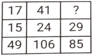 लुप्त संख्या (भाग-IV)Total Questions: 5011. हल कीजिए : [SSC CPO 24/11/2020 (Morning)](a) 21(b) 30(c) 17(d) 23Correct Answer: (c) 17Solution:d12. हल कीजिए : [SSC CPO 24/11/2020 (Morning)](a) 32(b) 24(c) 37(d) 28Correct Answer: (d) 28Solution:d13. हल कीजिए : [SSC CPO 24/11/2020 (Morning)](a) 144(b) 208(c) 192(d) 110Correct Answer: (d) 110Solution:d14. हल कीजिए : [SSC CPO 24./11/2020 (Morning)](a) 13(b) 33(c) 21(d) 25Correct Answer: (d) 25Solution:d15. हल कीजिए : [SSC CPO 24/11/2020 (Evening)](a) 150(b) 210(c) 195(d) 180Correct Answer: (d) 180Solution:d16. हल कीजिए : [SSC CPO 24/11/2020 (Evening)](a) 24(b) 28(c) 19(d) 47Correct Answer: (c) 19Solution:d17. हल कीजिए : [SSC CPO 24/11/2020 (Evening)](a) 88(b) 72(c) 68(d) 120Correct Answer: (c) 68Solution:d18. हल कीजिए : [SSC CPO 24/11/2020 (Evening)](a) 596(b) 544(c) 558(d) 552Correct Answer: (c) 558Solution:d19. हल कीजिए : [SSC CPO 25/11/2020 (Morning)](a) 32(b) 38(c) 36(d) 42Correct Answer: (d) 42Solution:d20. हल कीजिए : [SSC CPO 25/11/2020 (Morning)](a) 16(b) 61(c) 51(d) 15Correct Answer: (b) 61Solution:dSubmit Quiz« Previous12345Next »