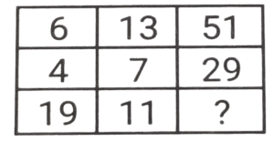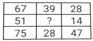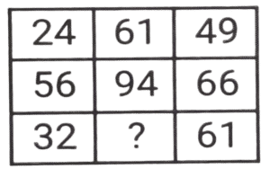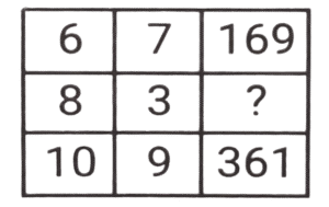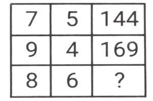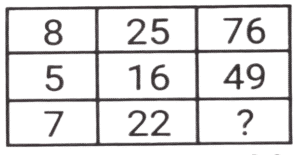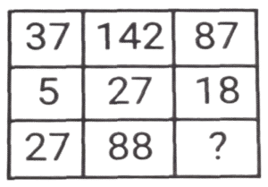 लुप्त संख्या (भाग-V)Total Questions: 6031. हल कीजिए : [SSC MTS 09/08/2019 (Afternoon)](a) 3(b) 4(c) 6(d) 2Correct Answer: (a) 3Solution:6 × 5 + 4 = 30 + 4 = 34 3 × 5 = 15 + 8 = 23 7x + 9 = 30 ⇒ 7x =21 ⇒ x = 3.32. हल कीजिए : [SSC MTS 09/08/2019 (Evening)](a) 16(b) 20(c) 90(d) 31Correct Answer: (c) 90Solution:13 - 1 = 12 , 6 × 12 = 72 7 - 1 = 6 , 4 × 6 = 24 11 - 1 = 10 , 9 × 10 = 90.33. हल कीजिए : [SSC MTS 13/08/2019 (Morning)](a) 61(b) 16(c) 17(d) 71Correct Answer: (d) 71Solution:6 + 13 = 19 ; 19 × 3 - 6 = 51 4 + 7 = 11 ; 11 × 3 - 4 = 29 19 + 11 = 30 ; 30 × 3 - 19 = 7134. हल कीजिए : [SSC MTS 16/08/2019 (Morning)](a) 37(b) 26(c) 13(d) 41Correct Answer: (b) 26Solution:पहली पंक्ति ; 39 + 28 = 67 तीसरी पंक्ति ; 28 + 47 = 75 दूसरी पंक्ति ; ? + 14 = 51 ⇒ ? = 3735. हल कीजिए : [SSC MTS 16/08/2019 (Afternoon)](a) 82(b) 77(c) 58(d) 94Correct Answer: (b) 77Solution:तर्क (पंक्ति में) :- तीसरी संख्या + पहली संख्या/2 = दूसरी संख्या 49 + 24/2 = 49 + 12 = 61 66 + 56/2 = 66 + 28 = 94 61 + 32/2= 61 + 16 = 7736. हल कीजिए : [SSC MTS 16/08/2019 (Evening)](a) 71(b) 45(c) 38(d) 51Correct Answer: (d) 51Solution:यहां, पहले कॉलम में, पहला पद - (2 × दूसरा पद) = तीसरा पद 37 - (5 × 2) = 37 - 10 = 27 ; 142 - (27 × 2) = 142 - 54 = 88 ; 87 - (18 × 2) = 87 - 36 = 5137. हल कीजिए : [SSC MTS 19/08/2019 (Evening)](a) 210(b) 140(c) 174(d) 198Correct Answer: (c) 174Solution:पंक्ति के लिए : - 4 × 4 = 16 × 4 = 64 - 1 = 63 ; 8 × 6 = 48 × 6 = 288 - 1 = 287 7 × 5 = 35 × 5 = 175 - 1 = 17438. हल कीजिए : [SSC MTS 20/08/2019 (Morning)](a) 225(b) 176(c) 256(d) 196Correct Answer: (d) 196Solution:7 + 5 = 12 , (12)² = 144 ; 9 + 4 = 13 , (13)² = 169 ; 8 + 6 = 14 , (14)² = 196.39. हल कीजिए : [SSC MTS 20/08/2019 (Evening)](a) 90(b) 64(c) 67(d) 79Correct Answer: (c) 67Solution:यहाँ, पैटर्नहै : (8 × 3) + 1 = 25, (25 × 3) + 1 = 76 (5 × 3) + 1 = 16, (16 × 3) + 1 = 49 (7 × 3) + 1 = 22, (22 × 3) + 1 = 6740. हल कीजिए : [SSC MTS 21/08/2019 (Morning)](a) 101(b) 111(c) 144(d) 121Correct Answer: (d) 121Solution:यहाँसभी पंक्तियों में: (पहले और दूसरे पद का योग)² = तीसरा पद 6 + 7 = 13 , 13 × 13 = 169 ; 10 + 9 = 19 , 19 × 19 = 361. 8 + 3 = 11 , 11 × 11 = 121.Submit Quiz« Previous123456Next »
