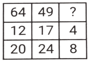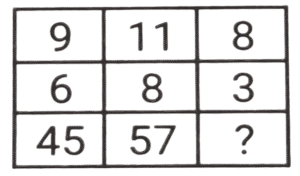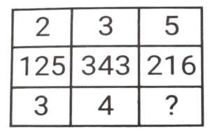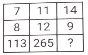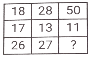लुप्त संख्या (भाग-V)Total Questions: 6051. हल कीजिए : [SSC CGL 11/06/2019 (Evening)](a) 3(b) 51(c) 9(d) 12Correct Answer: (a) 3Solution:4² + 5² = 16 + 25 = 41 6² +3² = 36 + 9 = 45 7² + X² = 49 + X² = 58 𝑋² = 9 ; X = 352. हल कीजिए : [SSC CGL 12/06/2019 (Morning)](a) 12(b) 14(c) 11(d) 10Correct Answer: (d) 10Solution:11 + √16 = 11 + 4 = 15 17 + √36 = 17 + 6 = 23 उसी प्रकार , 8 + √4 = 8 + 2 = 10.53. हल कीजिए : [SSC CGL 12/06/2019 (Morning)](a) 54(b) 55(c) 52(d) 53Correct Answer: (b) 55Solution:9² - 6² = 81 - 36 = 45 11² - 8² = 121 - 64 = 57 8² - 3² = 64 - 9 = 55. अतः लुप्त संख्या 55 है।54. हल कीजिए : [SSC CGL 12/06/2019 (Afternoon)](a) 16(b) 64(c) 36(d) 25Correct Answer: (b) 64Solution:9 - 7 = 2 , 2³ = 8 5 - 2 = 3 , 3³ = 27 7 - 3 = 4 , 4³ = 6455. हल कीजिए : [SSC CGL 12/06/2019 (Afternoon)](a) 16(b) 12(c) 36(d) 25Correct Answer: (a) 16Solution:20 - 12 = 8 , 8² = 64 24 - 17 = 7 , 7² = 49 8 - 4 = 4 , 4² = 16.56. हल कीजिए : [SSC CGL 12/06/2019 (Evening)](a) 8(b) 27(c) 5(d) 36Correct Answer: (c) 5Solution:4² + 5² = 64 + 25 = 89 3² + 4² = 27 + 16 = 43 1² + 2² = 1 + 4 = 557. हल कीजिए : [SSC CGL 12/06/2019 (Evening)](a) 40(b) 41(c) 42(d) 43Correct Answer: (a) 40Solution:35 + = 35 + 32/2 = 35 + 16 = 51 28 + 18/2= 28 + 9 = 37 ; उसी प्रकार , 40 + 14/2 = 40 + 7 = 47. अतः लुप्त संख्या 40 है।58. हल कीजिए : [SSC CGL 13/06/2019 (Morning)](a) 61(b) 30(c) 29(d) 36Correct Answer: (d) 36Solution:18/2 + 17 = 9 + 17 = 26 28/2 + 13 = 14 + 13 = 27 उसीप्रकार , 50/2 + 11 = 25 + 11 = 3659. हल कीजिए : [SSC CGL 13/06/2019 (Morning)](a) 277(b) 625(c) 361(d) 281Correct Answer: (a) 277Solution:7² + 8² = 49 + 64 = 113 उसी प्रकार , 14² + 9² = 196 + 81 = 277.60. हल कीजिए : [SSC CGL 13/06/2019 (Afternoon)](a) 2(b) 1(c) 4(d) 3Correct Answer: (b) 1Solution:2 + 3 = 5 , 5³ = 125 3 + 4 = 7 , 7³ = 343 5 + 1 = 6 , 6³ = 216Submit Quiz« Previous123456