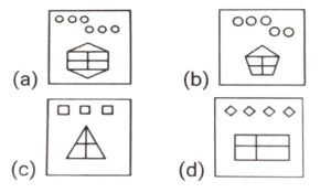 वर्गीकरण गैर-मौखिकTotal Questions: 3431. निम्नलिखित चार विकल्प आकृतियों में से तीन एक निश्चित तरीके से समान हैं और एक अलग है। विषम को चुनें।विषम को चुनें। (a) C(b) D(c) A(d) DCorrect Answer: (d) DSolution:सभी आकृतियों में आकृति (D) को छोड़कर, रेखा आरेख को दो बराबर भागों में विभाजित करती है।32. निम्नलिखित चार विकल्प आकृतियों में से तीन एक निश्चित तरीके से समान हैं और एक अलग है। विषम को चुनें।(a) C(b) D(c) A(d) BCorrect Answer: (a) CSolution:आकृति बनाने के लिए आवश्यक न्यूनतम रेखाओं की संख्या गिनें। प्रतीक V को छोड़कर सभी तीन रेखाखंडों से बने हैं जबकि प्रतीक v दो रेखाखंडों से बना है। अतः विकल्प (a) सही उत्तर है।33. निम्नलिखित चार विकल्प आकृतियों में से तीन एक निश्चित तरीके से समान हैं और एक अलग है। विषम को चुनें।(a)(b)(c)(d)Correct Answer: (c)Solution:34. निम्नलिखित चार विकल्प आकृतियों में से तीन एक निश्चित तरीके से समान हैं और एक अलग है। विषम को चुनें।(a)(b)(c)(d)Correct Answer: (d)Solution:Submit Quiz« Previous1234