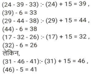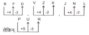 वर्गीकरण (भाग-I)Total Questions: 5041. उस अक्षर-समूह का चयन कीजिये जो भिन्न हो। [SSC Stenographer 11/12/2024 (Morning)](a) UYX(b) BFE(c) IML(d) OSTCorrect Answer: (d) OSTSolution:42. उस अक्षर-समूह का चयन कीजिये जो भिन्न हो। [SSC Stenographer 11/12/2024 (Morning)](a) HGMQ(b) FEKS(c) POUI(d) IJOTCorrect Answer: (d) IJOTSolution:तर्क:- (पहली संख्या × 4) - 3 = दूसरी संख्या43. उस संख्या युग्म का चयन कीजिए जो अलग है। [SSC Stenographer 11/12/2024 (Evening)](a) (11 : 41)(b) (9 : 33)(c) (10 : 37)(d) (12:46)Correct Answer: (d) (12:46)Solution:44. अलग विकल्प का चयन करें। [SSC Stenographer 11/12/2024 (Evening)](a) PUR(b) BFD(c) VZX(d) JNLCorrect Answer: (a) PURSolution:जैसे गेंद गोलाकार है, जन्मदिन की टोपी शंकु है, अंगूठी वृत्त है लेकिन टेलीविजन त्रिभुज आकार का नहीं है।45. निम्नलिखित चार शब्द युग्मों में से तीन शब्द युग्म किसी प्रकार से एक समान हैं और इस प्रकार एक समूह बनाते हैं। कौन-सा शब्द युग्म उस समूह से संबंधित नहीं है? [SSC CHSL Tier II (18/11/2024)](a) गेंद - गोला(b) जन्मदिन की टोपी - शंकु(c) टेलीविजन - त्रिभुज(d) अँगूठी - वृत्तCorrect Answer: (c) टेलीविजन - त्रिभुजSolution:तर्क:- (पहली संख्या) + 15 = दूसरी संख्या, (दूसरी संख्या) - 6 = तीसरी संख्या 46. विषम संख्या युग्म ज्ञात कीजिए। [SSC CHSL Tier II (18/11/2024)](a) 76 - 67 - 54(b) 87 - 78 - 69(c) 112 - 103 - 94(d) 94 - 85 - 76Correct Answer: (a) 76 - 67 - 54Solution:तर्क:- (पहली संख्या + तीसरी संख्या) ÷ 2 = दूसरी संख्या 47. विषम संख्या युग्म ज्ञात कीजिए। [SSC MTS 23/10/2024 (Morning)](a) (5, 10, 100)(b) (9, 18, 320)(c) (8, 16, 256)(d) (3, 6, 36)Correct Answer: (b) (9, 18, 320)Solution:तर्क :- (तीसरी संख्या दूसरी संख्या) ÷ 2 = पहली संख्या (5, 10, 100) :- (100 ÷ 10)) ÷ 2 = 5 (8, 16, 256) :- (256 ÷ 16) ÷ 2 = 8 (3, 6, 36) :- (36 ÷ 6) ÷ 2 = 3 लेकिन, (9, 18, 320) :- (320 ÷ 18) ÷ 2 ne948. विषम संख्या युग्म ज्ञात कीजिए। [SSC CGL 09/09/2024 (1st Shift)](a) 335 - 119(b) 358 - 152(c) 317 - 101(d) 308 - 92Correct Answer: (b) 358 - 152Solution:तर्क:- (पहली संख्या - दूसरी संख्या) = 216 (335, 119) :- (335 - 119) = 216 (317, 101) :- (317 - 101) = 216 (308, 92) :- (308-92) = 216 लेकिन, (358, 152) :- (358 - 152) = 20649. विषम विकल्प को चुनें। [SSC CGL 09/09/2024 (1st Shift)](a) त्रिभुज - 3 भुजाएँ(b) पंचभुज - 5 भुजाएँ(c) वर्ग - 4 भुजाएँ(d) षट्भुज - 8 भुजाएँCorrect Answer: (d) षट्भुज - 8 भुजाएँSolution:त्रिभुज की 3 भुजाएँ होती हैं, पंचकोण की 5 भुजाएँ होती हैं, वर्ग की 4 भुजाएँ होती हैं, लेकिन षट्भुज की 6 भुजाएँ होती हैं, 8 नहीं।50. विषम विकल्प को चुनें। [SSC CGL 09/09/2024 (2nd Shift)](a) EJ - OT(b) PF - OI(c) KP - UZ(d) CH - MRCorrect Answer: (b) PF - OISolution:Submit Quiz« Previous12345