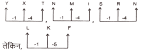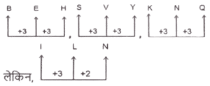 वर्गीकरण (भाग-II )Total Questions: 5021. विषम संख्या युग्म ज्ञात कीजिए। [SSC CGL 13/09/2024 (1st Shift)](a) LKF(b) YXT(c) NMI(d) SRNCorrect Answer: (a) LKFSolution:22. विषम संख्या युग्म ज्ञात कीजिए। [SSC CGL 13/09/2024 (1st Shift)](a) 31 - 5 - 160(b) 279 - 243(c) 21 - 4 - 89(d) 13 - 8 - 109Correct Answer: (b) 279 - 243Solution:तर्क :- (पहली संख्या × दूसरी संख्या) + 5 = तीसरी संख्या (31 - 5 - 160) :- (31 × 5) + 5 ⇒ (155) + 5 = 160 (21 - 4 - 89) :- (21 × 4) + 5 ⇒ (84) + 5 = 89 (13 - 8 - 109) :- (13 × 8) + 5 ⇒ (104) + 5 = 109 लेकिन, (27 - 9 - 243) :- (27 × 9) + 5 ⇒ (243) + 5 = 248 (243 नहीं)23. उस संख्या युग्म का चयन कीजिए जो अलग है। [SSC CGL 13/09/2024 (2nd Shift)](a) 83, 97(b) 73, 79(c) 61, 71(d) 31, 41Correct Answer: (b) 73, 79Solution:तर्कः दोनों अभाज्य संख्याओं के बीच एक अभाज्य संख्या है लेकिन विकल्प (b) में अभाज्य संख्याएँ क्रमागत हैं24. विषम संख्या युग्म ज्ञात कीजिए। [SSC CGL 13/09/2024 (2nd Shift)](a) SVXZ(b) EHJK(c) YBDE(d) TWYZCorrect Answer: (a) SVXZSolution:25. विषम संख्या युग्म ज्ञात कीजिए। [SSC CGL 17/09/2024 (1st Shift)](a) BEH(b) SVY(c) ILN(d) KNQCorrect Answer: (c) ILNSolution:26. विषम संख्या युग्म ज्ञात कीजिए। [SSC CGL 17/09/2024 (1st Shift)](a) 26 - 95 - 21(b) 22 - 67 - 22(c) 20 - 15 - 51(d) 16 - 45 - 21Correct Answer: (b) 22 - 67 - 22Solution:तर्क :- (B) को छोड़कर सभी विकल्पों में सभी संख्याओं का योग सम है। (a) 26 - 95 - 21 ⇒ 26 + 95 + 21 = 142 (b) 22 - 67 - 22 ⇒ 22 + 67 + 22 = 111 (c) 20 - 15 - 51 ⇒ 20 + 15 + 51 = 86 (d) 16 - 45 - 21 ⇒ 16 + 45 + 21 = 8227. विषम युग्म ज्ञात कीजिए। [SSC CGL 17/09/2024 (2nd Shift)](a) HLJ(b) GIK(c) LPN(d) BFDCorrect Answer: (b) GIKSolution:28. विषम संख्या युग्म ज्ञात कीजिए। [SSC CGL 17/09/2024 (2nd Shift)](a) 40 : 52(b) 45 : 54(c) 35 : 42(d) 55 : 66Correct Answer: (a) 40 : 52Solution:तर्क : विकल्प (a) को छोड़कर, सभी विकल्पों का अनुपात (5:6) है । 45 : 54 ⇒ 45/9 : 54/9 = 5 : 6 35 : 42 ⇒ 35/7 : 42/7 = 5 : 6 55 : 66 ⇒ 55/11 : 66/11 = 5 : 6 लेकिन, 40 : 52 ⇒ 40/4 : 52/4 = 10 : 1329. भिन्न अक्षर-समूह का चयन कीजिये ? [SSC CGL 17/09/2024 (3rd Shift)](a) NPRS(b) KMOP(c) UVXW(d) EGIJCorrect Answer: (c) UVXWSolution:30. विषम संख्या युग्म ज्ञात कीजिए। [SSC CGL 18/09/2024 (1st Shift)](a) 16 - 9 - 139(b) 25 - 7 - 175(c) 12 - 7 - 79(d) 17 - 5 - 800Correct Answer: (b) 25 - 7 - 175Solution:तर्कः (पहली संख्या × दूसरी संख्या) -5 = तीसरी संख्या 16 - 9 - 139 :- (16 × 9) - 5 = 139 12 - 7 - 79 :- (12 × 7) - 5 = 79 17 - 5 - 80 :- (17 × 5) - 5 = 80 लेकिन 25 - 7 - 175 :- (25 × 7) - 5 = 170 ( ≠ 175)Submit Quiz« Previous12345Next »