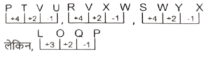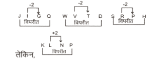 वर्गीकरण (भाग-IV)Total Questions: 5011. निम्नलिखित चार शब्द-युग्मों में से तीन शब्द-युग्म एक जैसे हैं और इस प्रकार एक समूह बनाते हैं। उस शब्द-युग्म का चयन कीजिए जो उस समूह से संबंधित नहीं है। [SSC CHSL Tier II (10/01/2024)](a) पानी - बोतलें(b) कपड़े - अलमारियां(c) धन - बटुए(d) चावल - खानाCorrect Answer: (d) चावल - खानाSolution:पानी को बोतल में, कपडे को अलमारी में और धन को बटुए में रखा जाता है किन्तु चावल और खाना का ऐसा कोई सम्बन्ध नहीं है। अतः विकल्प व विषम है।12. निम्नलिखित चार शब्द-युग्मों में से तीन शब्द-युग्म एक जैसे हैं और इस प्रकार एक समूह बनाते हैं। उस शब्द-युग्म का चयन कीजिए जो उस समूह से संबंधित नहीं है। [SSC CHSL Tier II (02/11/2023)](a) रेस्तरां - रसोइए(b) सिनेमाघर - फिल्में(c) अस्पताल - चिकित्सक(d) विद्यालय - शिक्षकCorrect Answer: (b) सिनेमाघर - फिल्मेंSolution:रेस्तरां में रसोइए काम करते हैं, चिकित्सक अस्पताल में काम करते हैं शिक्षक विद्यालय में काम करते हैं लेकिन फिल्में सिनेमाघर में काम नहीं करती। अतः विकल्प (b) विषम है।13. विषम संख्या युग्म ज्ञात कीजिए। [SSC CHSL Tier II (02/11/2023)](a) 33 - 97(b) 25 - 75(c) 38 - 114(d) 41 - 123Correct Answer: (a) 33 - 97Solution:तर्क:- (पहली संख्या × 3) = दूसरी संख्या (25, 75) :- 25 × 3 = 75 (38, 114) :- 38 × 3 = 114 (41, 123) :- 41 × 3 = 1.23 लेकिन, (33, 97) → 33 × 3 = 99 (97 नहीं)14. निम्नलिखित शब्द युग्मों में से तीन शब्द युग्म किसी तरीके से एक समान हैं और इसलिए एक समूह का निर्माण करते हैं। कौन-सा शब्द युग्म उस समूह से संबंधित नहीं है? [SSC CGL Tier II (26/10/2023)](a) यात्रा करना (Travel) : सैर करना (Tour)(b) पास (Close) : दूर (Distant)(c) अवलोकन (Look) : देखना (See)(d) ढोना (Carry) : उठाना (Lift)Correct Answer: (b) पास (Close) : दूर (Distant)Solution:'पास (Close) : दूर (Distant)' को छोड़कर बाकी सभी शब्द एक दूसरे के पर्यायवाची हैं।15. निम्नलिखित चारों संख्या-युग्मों में से तीन किसी निश्चित तरीके से समान हैं और इस प्रकार कोई समूह बनाते हैं। वह कौन-सा युग्म है, जिसका संबंध उस समूह से नहीं है? [SSC CGL Tier II (26/10/2023)](a) 13 - 117(b) 11 - 89(c) 18 - 162(d) 15 - 135Correct Answer: (b) 11 - 89Solution:तर्क :- (पहली संख्या × 9) = दूसरी संख्या (13 : 117) :- (13 × 9) = 117 (15 : 135) :- (15 × 9) = 135 (18 : 162) :- (18 × 9) = 162 लेकिन, 11 : 89 :- (11 × 9) = 99 (89 नहीं)16. भिन्न अक्षर-समूह का चयन कीजिये ? [SSC CPO 03/10/2023 (1st Shift)](a) JIGQ(b) WVTD(c) KLNP(d) SRPHCorrect Answer: (c) KLNPSolution:17. भिन्न अक्षर-समूह का चयन कीजिये ? [SSC CPO 03/10/2023 (3rd Shift)](a) EHBG(b) SUPT(c) PRMQ(d) JLGKCorrect Answer: (a) EHBGSolution:18. भिन्न अक्षर-समूह का चयन कीजिये ? [ SSC CPO 04/10/2023 (1st Shift)](a) SVXY(b) PSUV(c) GTHS(d) NQSTCorrect Answer: (c) GTHSSolution:19. भिन्न अक्षर-समूह का चयन कीजिये ? [SSC CPO 04/10/2023 (2nd Shift)](a) GCKD(b) XOTP(c) NJRK(d) UQYRCorrect Answer: (b) XOTPSolution:20. भिन्न अक्षर-समूह का चयन कीजिये ? [SSC CPO 04/10/2023 (2nd Shift)](a) SWYX(b) LOQP(c) RVXW(d) PTVUCorrect Answer: (b) LOQPSolution:Submit Quiz« Previous12345Next »