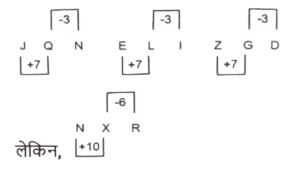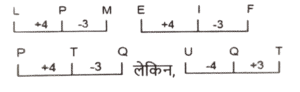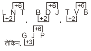 वर्गीकरण (भाग-IV)Total Questions: 5031. भिन्न अक्षर-समूह का चयन कीजिये ? [SSC CHSL 02/08/2023 (3rd Shift)](a) 16 - 276(b) 21 - 441(c) 23 - 529(d) 19 - 361Correct Answer: (a) 16 - 276Solution:तर्क :- (पहली संख्या)² = दूसरी संख्या (21)² = 441 , (23)² = 529 , (19)² = 361 लेकिन, (16)² = 256 ≠ 27632. नीचे चार पद दिए गए हैं, जिनमें से तीन किसी प्रकार से समान हैं और एक भिन्न है। उस पद को चुनिए जो भिन्न है। [SSC CHSL 02/08/2023 (3rd Shift)](a) LPM(b) UQT(c) EIF(d) PTQCorrect Answer: (b) UQTSolution:33. भिन्न अक्षर-समूह का चयन कीजिये ? [SSC CHSL 02/08/2023 (4th Shift)](a) JQN(b) ELI(c) ZGD(d) NXRCorrect Answer: (d) NXRSolution:34. भिन्न अक्षर-समूह का चयन कीजिये ? [SSC CHSL 03/08/2023 (1st Shift)](a) MKN(b) QOR(c) GEH(d) TRVCorrect Answer: (d) TRVSolution:35. भिन्न अक्षर-समूह का चयन कीजिये ? [SSC CHSL 03/08/2023 (1st Shift)](a) 5 : 23(b) 4 : 19(c) 2 : 11(d) 7 : 32Correct Answer: (d) 7 : 32Solution:तर्क : (पहली संख्या × 4) + 3 = दूसरी संख्या 5 : 23 → (5 × 4) + 3 = 20 + 3 = 23 4 : 19 → (4 × 4) + 3 = 16 + 3 = 19 2 : 11 → (2 × 4) + 3 = 8 + 3 = 11 लेकिन, 7 : 32 → (7 × 4) + 3 = 28 + 3 = 31 (32 नहीं)36. उस विकल्प को चुनिए जिसमें संख्याएँ वही संबंध साझा नहीं करती है जो दिए गए संख्याओं के युग्मों में साझा किया जाता है। [SSC CHSL 03/08/2023 (2nd Shift)]4 : 75 और 2 : 19.(a) 3 : 38(b) 7 : 354(c) 6 : 212(d) 5 : 136Correct Answer: (c) 6 : 212Solution:तर्क :- (पहली संख्या)³ + 11 = दूसरी संख्या 4 : 75 :- (4)³ + 11 = 64 + 11 = 75 2 : 19 :- (2)³ + 11 = 8 + 11 = 19 लेकिन, 6 : 212 :- (6)³ + 11 216 + 11 = 227 (212 नहीं)37. उस शब्द- युग्म का चयन कीजिए जो नीचे दिए गए शब्दों के युग्म में व्यक्त किए गए समान संबंध का प्रतिनिधित्व नहीं करता है। [SSC CHSL 03/08/2023 (3rd Shift)]तेजी से : शीघ्र(a) हासिल करना : प्राप्त करना(b) संकट : परेशानी(c) सत्य : सही(d) निष्क्रिय : सक्रियCorrect Answer: (d) निष्क्रिय : सक्रियSolution:तेजी से, शीघ्र का पर्यायवाची है लेकिन निष्क्रिय, सक्रिय का विपरीतार्थी है। इसलिए निष्क्रियः सक्रिय वह शब्द-युग्म है जो प्रश्न युग्म के साथ समान संबंध नहीं दर्शाता है।38. भिन्न अक्षर-समूह का चयन कीजिये ? [SSC CHSL 03/08/2023 (3rd Shift)](a) TVD(b) FHP(c) KMV(d) KMVCorrect Answer: (d) KMVSolution:39. विषम संख्या युग्म ज्ञात कीजिए। [SSC CHSL 03/08/2023 (4th Shift)](a) 7 - 56(b) 9 - 90(c) 4 - 20(d) 6 - 48Correct Answer: (d) 6 - 48Solution:तर्क :- (पहली संख्या) × (पहली संख्या + 1) = दूसरी संख्या 7 - 56 ⇒ (7) × (7 + 1) = (7) × (8) = 56 9 - 90 ⇒ (9) × (9 + 1) = (9) × (10) = 90 4 - 20 ⇒ (4) × (4 + 1) = (4) × (5) = 20 लेकिन 6 - 48 ⇒ (6) × (6 + 1) = (6) × (7) = 42 (48 नहीं)40. भिन्न अक्षर-समूह का चयन कीजिये ? [SSC CHSL 04/08/2023 (1st Shift)](a) LNT(b) GJP(c) BDJ(d) TVBCorrect Answer: (b) GJPSolution:Submit Quiz« Previous12345Next »