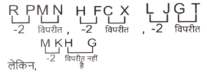 वर्गीकरण (भाग-VII)Total Questions: 5021. विषम संख्या युग्म ज्ञात कीजिए। [SSC CHSL 20/03/2023 (1st Shift)](a) 32859 - 98523(b) 78434 - 43487(c) 58299 - 99285(d) 63942 - 24936Correct Answer: (a) 32859 - 98523Solution:विकल्प (a) को छोड़कर बाईं ओर की सभी संख्याएँ दाईं ओर उल्टे क्रम में लिखी गई हैं। ⇒ 78434 → 43487 , 58299 → 99285 ⇒ 63942 → 24936 लेकिन, ⇒ 32859 → 95823 (98523 नहीं)22. विषम संख्या युग्म ज्ञात कीजिए। [SSC CHSL 20/03/2023 (1st Shift)](a) 1003 - 1006009(b) 1009 -1018091(b) 1009 -1018091(d) 1001 - 1002001Correct Answer: (b) 1009 -1018091Solution:विकल्प b को छोड़कर दाईं ओर की सभी संख्याएँ बाईं ओर की संख्याओं का वर्ग हैं। ⇒ 1003 - 1006009 → (1003)² = 1006009 ⇒ 1007 - 1014049 → (1007)² = 1014049 ⇒ 1001 - 1002001 → (1002)² = 1002001 लेकिन, ⇒ 1009 - 1018091 - (1009)² = 1018081 (1018091 नहीं)23. उस अक्षर समूह को चुनिए जो बाकियों से अलग है। [SSC CHSL 20/03/2023 (1st Shift)](a) CX(b) AZ(c) FU(d) MPCorrect Answer: (d) MPSolution:विकल्प (d) को छोड़कर दोनों अक्षर एक दूसरे के विपरीत हैं।24. निम्नलिखित प्रश्न में दिए गए विकल्पों में से अलग अक्षर / अक्षरों को चुनिए । [SSC CHSL 20/03/2023 (2nd Shift)](a) RPMN(b) HFCX(c) LJGT(d) MKHGCorrect Answer: (d) MKHGSolution:25. विषम संख्या युग्म ज्ञात कीजिए। [SSC CHSL 20/03/2023 (3rd Shift)](a) 64 - 4032(b) 38 - 1444(c) 42 - 1764(d) 52 - 2704Correct Answer: (a) 64 - 4032Solution:तर्कः - दाईं ओर की संख्या बाईं ओर की संख्या का वर्ग है। ⇒ (38 - 1444) → (38)² = 1444 ⇒ (42 - 1764) → (42)² = 1764 ⇒ (52 - 2704) → (52)² = 2704 लेकिन, (64 - 4032) → (64)² = 4096 (4032 नहीं)26. विषम संख्या युग्म ज्ञात कीजिए। [SSC CHSL 20/03/2023 (3rd Shift)](a) 726 - 2278(b) 1248 - 3744(c) 1024 - 3072(d) 336 -1008Correct Answer: (c) 1024 - 3072Solution:तर्क : -(पहली संख्या) × 3 = दूसरी संख्या ⇒ 1248 - 3744 → (1248) × 3 = 3744 ⇒ 1024 - 3072 → (1024) × 3 = 3072 ⇒ 336 - 1008 → (336) × 3 = 1008 लेकिन, ⇒ 726 - 2278 → (726) × 3 = 2178 (2278 नहीं )27. विषम संख्या युग्म ज्ञात कीजिए। [SSC CHSL 20/03/2023 (4th Shift)](a) 11-1331(b) 12-1728(c) 16 - 4086(d) 13-2197Correct Answer: (c) 16 - 4086Solution:तर्क:- (पहली संख्या)³= दूसरी संख्या (11)³ = 1331 , (12)³ = 1728 (13)³ = 2197 लेकिन, ⇒ (16 - 4086) → (16)³ = 4096 (4086 नहीं )28. उस अक्षर- समूह को चुनिए जो बाकियों से अलग है। [SSC CHSL 20/03/2023 (4th Shift)](a) KIO(b) DEH(c) WXA(d) NORCorrect Answer: (a) KIOSolution:29. उस समूह को चुनिए जो बाकियों से अलग है। [SSC CHSL 21/03/2023 (1st Shift)](a) NOS(b) GHM(c) BCG(d) JKOCorrect Answer: (b) GHMSolution:30. निम्नलिखित प्रश्न में दिए गए विकल्पों में से अलग अक्षर / अक्षरों को चुनिए। [SSC CHSL 21/03/2023 (2nd Shift)](a) RTW(b) PSV(c) ADG(d) ILOCorrect Answer: (a) RTWSolution:Submit Quiz« Previous12345Next »
