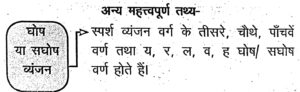 Solution:जिन ध्वनियों के उच्चारण में वायु के गले से निकलने पर स्वर तन्त्रियों में कम्पन नहीं होता, उन्हें 'अघोष' कहा जाता है। व्यंजन वर्गों के पहले व दूसरे व्यंजन को अघोष कहा जाता है। जैसे- क, ख, च, छ, ट, ठ, त, थ, प, फ, श, ष, स, इत्यादि।