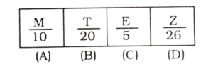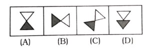 विविध : वर्गीकरण (151-200 प्रश्न)Total Questions: 5011. असंगत की पहचान करें : [RRB Group 'D' Level-I परीक्षा, 23.10.2018 द्वितीय पाली](1) B(2) D(3) C(4) ACorrect Answer: (3) CSolution:प्रश्न में दी गई आकृतियों में से विकल्प C को छोड़कर अन्य सभी जल प्रतिबिम्ब के उदाहरण है।12. निम्न आकृतियों में से असंगत आकृति को पहचानें: [RRB Group 'D' Level-I परीक्षा, 23.10.2018 तृतीय पाली](1) B(2) D(3) A(4) CCorrect Answer: (4) CSolution:प्रश्न में दी गई आकृतियों में से विकल्प C अन्य तीनों से भिन्न है। (रेखा का वृत के अंदर से गुजरना)13. असंगत की पहचान करें: [RRB Group 'D' Level-I परीक्षा, 23.10.2018 तृतीय पाली](1) B(2) C(3) A(4) DCorrect Answer: (2) CSolution:sin 90º = 1cos 0º = 1tan 90º = ∞ (अनन्त)tan 45º = 1अतः tan 90º असंगत है।14. असंगत की पहचान करें: [RRB Group 'D' Level-I परीक्षा, 23.10.2018 तृतीय पाली](1) A(2) B(3) C(4) DCorrect Answer: (4) DSolution:अंग्रेजी वर्णमाला के क्रम में,A — 1M — 13T — 20C — 3 ≠ 515. असंगत की पहचान करें : [RRB Group 'D' Level-I परीक्षा, 23.10.2018 तृतीय पाली](1) D(2) B(3) C(4) ACorrect Answer: (1) DSolution:प्रश्न में दी गई आकृतियों में से विषम आकृति विकल्प D है।16. विषम की पहचान कीजिए : [RRB Group 'D' Level-I परीक्षा, 24.10.2018 द्वितीय पाली](1) A(2) C(3) D(4) BCorrect Answer: (3) DSolution:प्रश्न में दिए गए आकृतियों में से आकृति D विषम है।17. दी गयी आकृतियों के समूह में से विषम की पहचान करें। [RRB Group 'D' Level-I परीक्षा, 24.10.2018 द्वितीय पाली](1)(2)(3)(4)Correct Answer: (2)Solution:विकल्प 2 को छोड़कर प्रत्येक आकृति मैं वृत आन्तरिक आकृति के रूप में शामिल है।18. उस अक्षर का चयन करें जो अन्यों से भिन्न है। [RRB Group 'D' Level-I परीक्षा, 26.10.2018 द्वितीय पाली](1) 1(2) 2(3) 5(4) 4Correct Answer: (1) 1Solution:E, I, O, U vowel (स्वर) हैं, जबकि P consonant व्यंजन है।19. विषम की पहचान करें: [RRB Group 'D' Level-I परीक्षा, 26.10.2018 द्वितीय पाली](1) B(2) D(3) A(4) CCorrect Answer: (4) CSolution:अंग्रेजी वर्णमाला में क्रम :-E → 5T → 20V → 22 ≠ 16Z → 2620. विषम की पहचान करें: [RRB Group 'D' Level-I परीक्षा, 26.10.2018 द्वितीय पाली](1) B(2) C(3) D(4) ACorrect Answer: (4) ASolution:अंग्रेजी वर्णमाला के आधार पर,M = 13 ≠ 10T = 20E = 5Z = 26Submit Quiz« Previous12345Next »