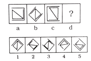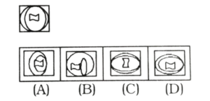 विविध : सादृश्यता या समसंबंध (51-100 प्रश्न)Total Questions: 501. निम्न विकल्पों में से कौन-सा विकल्प निम्नलिखित चित्र से लगभग मिलता-जुलता है? [RRB Group 'D' CBT परीक्षा, 23.09.2018 द्वितीय पाली](1) B(2) C(3) D(4) ACorrect Answer: (3) DSolution:दी गई आकृति उत्तर आकृति 'D' से मिलती-जुलती है।2. निम्नलिखित में से कौन-सा पैटर्न दी गयी आकृति के जैसा दिखाता है? [RRB Group 'D' CBT परीक्षा, 23.09.2018 तृतीय पाली](1) A(2) B(3) D(4) CCorrect Answer: (4) CSolution:दिए गए आकृति विकल्प 'C' के स्थान है।3. नीचे दिए गए विकल्पों में से कौन-सा पैटर्न, निम्न पैटर्न से मेल खाता है? [RRB Group 'D' CBT परीक्षा, 24.09.2018 द्वितीय पाली](1) A(2) D(3) B(4) CCorrect Answer: (1) ASolution:दिया गया पैटर्न विकल्प 'A' से मेल खाता है।4. निम्नलिखित में से कौन सी विकल्प आकृति प्रश्न आकृति से निकटतम समानता दर्शाती है? [RRB Group 'D' CBT परीक्षा, 24.09.2018 द्वितीय पाली](1) C(2) D(3) B(4) ACorrect Answer: (2) DSolution:विकल्प आकृति 'D' प्रश्न आकृति के समान है।5. कौन सा विकल्प चित्र, प्रश्न चित्र के साथ निकटतम समानता रखता है? [RRB Group 'D' CBT परीक्षा, 25.09.2018 द्वितीय पाली](1) D(2) B(3) A(4) CCorrect Answer: (4) CSolution:विकल्प चित्र 'C' प्रश्न चित्र के साथ निकटतम समानता रखता है।6. कौन सा विकल्प निम्न आकृति से निकटतम समानता दर्शाता है? [RRB Group 'D' CBT परीक्षा, 25.09.2018 द्वितीय पाली](1) A(2) C(3) B(4) DCorrect Answer: (4) DSolution:दी गए आकृति विकल्प 'D' के समान है।7. पिता और पुत्र दोनों पाते हैं कि चित्र a और b में किसी तरह की समानता है। उसी समानता के आधार पर नीचे दिए गए 5 विकल्पों में से d के स्थान पर वह चित्र चुनिए जो c से संबंधित हो? [RRB Group 'D' CBT परीक्षा, 03.10.2018 द्वितीय पाली](1) 4(2) 1(3) 3(4) 2Correct Answer: (1) 4Solution:आकृति (a) से (b) में आने पर बाहरी चिह्न 135° घड़ी की दिशा में जबकि अंदर का चिह्न 135° घड़ी की विपरीत दिशा घूमती है।इसी प्रकार, प्रश्न चिह्न के स्थान पर आकृति '4' आएगा।8. निम्नलिखित आकृतियों को समान गुणों के आधार पर तीन वर्गों में समूहित करें: [RRB Group 'D' CBT परीक्षा, 04.10.2018 तृतीय पाली](1) 1,5,9; 2,3,6; 4,8,7(2) 1,3,9; 2,4,6; 5,7,8(3) 1,2,5; 3,6,7 4,8,9(4) 1,5,9; 2,4,6; 3,5,7Correct Answer: (1) 1,5,9; 2,3,6; 4,8,7Solution:दिए गए आकृतियों को समान गुणों के आधार पर तीन वर्गों में समूहन = 1,5,9; 2,3,6; 4,8,79. निम्नलिखित में से कौन सी विकल्प आकृति प्रश्न आकृति से निकटतम समानता दर्शाती है? [RRB Group 'D' CBT परीक्षा, 09.10.2018 तृतीय पाली](1) C(2) B(3) A(4) DCorrect Answer: (1) CSolution:दी गयी आकृति विकल्प आकृति 'C' से निकटतम समानता रखती है।10. निम्नलिखित में से कौन सी विकल्प आकृति प्रश्न से निकटतम समानता दर्शाती है? [RRB Group 'D' CBT परीक्षा, 10.10.2018 द्वितीय पाली](1) C(2) D(3) B(4) ACorrect Answer: (2) DSolution:दी गयी आकृति विकल्प 'D' से समानता रखता है।Submit Quiz12345Next »