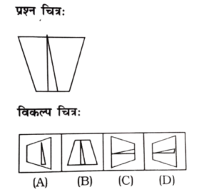 विविध : सादृश्यता या समसंबंध (51-100 प्रश्न)Total Questions: 5031. कौन-सा विकल्प चित्र, प्रश्न चित्र के साथ निकटतम समानता रखता है? [RRB Group 'D' CBT परीक्षा, 17.09.2018 तृतीय पाली](1) B(2) D(3) C(4) ACorrect Answer: (3) CSolution:प्रश्न आकृति को मिलाने पर आकृति "C" के समान है।32. विकल्पों में से कौन दिए गए चित्र का निकटस्थ सदृश्य है? [RRB Group 'D' CBT परीक्षा, 19.09.2018 द्वितीय पाली](1) В(2) A(3) D(4) CCorrect Answer: (2) ASolution:प्रश्न से दिए गए आकृति से निकटतम समानता उत्तर आकृति का विकल्प A रखता है।33. विकल्पों में से कौन दिए गए चित्र का निकटस्थ सदृश है? [RRB Group 'D' CBT परीक्षा, 19.09.2018 द्वितीय पाली](1) B(2) C(3) D(4) ACorrect Answer: (3) DSolution:प्रश्न में दिए गए आकृति से निकटतम समानता उत्तर आकृति का विकल्प D रखता है।34. RRB Group 'D' CBT परीक्षा, 19.09.2018 द्वितीय पाली [RRB Group 'D' CBT परीक्षा, 23.09.2018 प्रथम पाली](1) 3(2) 4(3) 1(4) 2Correct Answer: (4) 2Solution:विकल्प चित्र 'B' प्रश्न चित्र के समान है।35. कौन-सा विकल्प निम्नलिखित में से आकृति के निकटतम समानता दर्शाता है? [RRB Group 'D' CBT परीक्षा, 23.09.2018 प्रथम पाली](1) B(2) C(3) A(4) DCorrect Answer: (4) DSolution:विकल्प 'D' दिए गए आकृति से निकटतम समानता रखता है।36. निम्न विकल्पों में से कौन-सा विकल्प निम्नलिखित चित्र से लगभग मिलता-जुलता है? [RRB Group 'D' CBT परीक्षा, 23.09.2018 प्रथम पाली](1) C(2) B(3) A(4) DCorrect Answer: (4) DSolution:दिया गया चित्र विकल्प 'D' के समान है।37. निम्नलिखित में से कौन-सी विकल्प आकृति प्रश्न आकृति से निकटतम समानता दर्शाती है? [RRB Group 'D' CBT परीक्षा, 24.09.2018 द्वितीय पाली](1) B(2) D(3) A(4) CCorrect Answer: (2) DSolution:आकृति D प्रश्न आकृति के समान है।38. कौन-सा विकल्प चित्र प्रश्न चित्र के साथ निकटतम समानता रखता है? [RRB Group 'D' CBT परीक्षा, 24.09.2018 द्वितीय पाली](1) A(2) C(3) B(4) DCorrect Answer: (1) ASolution:A विकल्प प्रश्न चित्र से निकट समानता रखता है।39. निम्नलिखित में से कौन-सी विकल्प आकृति प्रश्न आकृति से निकटतम समानता दर्शाती है? [RRB Group 'D' CBT परीक्षा, 24.09.2018 द्वितीय पाली](1) C(2) D(3) B(4) ACorrect Answer: (1) CSolution:C विकल्प प्रश्न आकृति से समानता रखती है।40. निम्नलिखित में से कौन-सी विकल्प आकृति प्रश्न आकृति के निकटतम समानता दर्शाती है? [RRB Group 'D' CBT परीक्षा, 26.09.2018 द्वितीय पाली](1) C(2) B(3) A(4) DCorrect Answer: (3) ASolution:विकल्प A में दी गई आकृति प्रश्न आकृति के समान आकृति है।Submit Quiz« Previous12345Next »