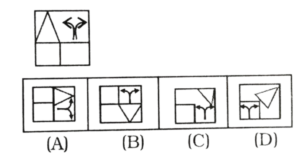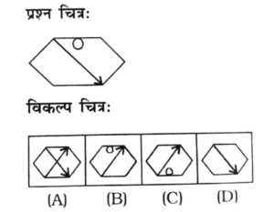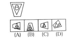 विविध : सादृश्यता या समसंबंध (51-100 प्रश्न)Total Questions: 5041. कौन-सा पैटर्न निम्नलिखित आकृति जैसा दिखता है? [RRB Group 'D' CBT परीक्षा, 26.09.2018 तृतीय पाली](1) 1(2) 2(3) 4(4) 3Correct Answer: (3) 4Solution:विकल्प (4) में दिए गए पैटर्न उक्त आकृति के समरूप दिखता है।42. कौन-सा विकल्प चित्र प्रश्न चित्र के साथ निकटतम समानता रखता है? [RRB Group 'D' CBT परीक्षा, 27.09.2018 प्रथम पाली](1) D(2) B(3) A(4) CCorrect Answer: (4) CSolution:C विकल्प प्रश्न चित्र के निकट समानता रखता है।43. निम्नलिखित में से कौन-सी विकल्प आकृति प्रश्न आकृतियों के निकटतम समानता दर्शाती है? [RRB Group 'D' CBT परीक्षा, 27.09.2018 प्रथम पाली](1) B(2) C(3) A(4) DCorrect Answer: (1) BSolution:B विकल्प प्रश्न आकृति के निकट समानता रखता है।44. निम्नलिखित में से कौन-सी विकल्प आकृति प्रश्न आकृतियों के निकटतम समानता दर्शाती है? [RRB Group 'D' CBT परीक्षा, 27.09.2018 प्रथम पाली](1) B(2) D(3) A(4) CCorrect Answer: (4) CSolution:C विकल्प प्रश्न आकृति से समानता रखती है।45. कौन सा पैटर्न निम्नलिखित आकृति के साथ निकटतम समानता रखता है? [RRB Group 'D' CBT परीक्षा, 28.09.2018 द्वितीय पाली](1) C(2) A(3) D(4) BCorrect Answer: (2) ASolution:प्रश्न में वर्णित आकृति उत्तर विकल्प में वर्णित (A) विकल्प से निकटतम समानता रखती है।46. विकल्पों में से कौन दिए गए चित्र का निकटस्थ सदृश्य है? [RRB Group 'D' CBT परीक्षा, 28.09.2018 तृतीय पाली](1) B(2) C(3) D(4) ACorrect Answer: (1) BSolution:दी गई आकृति में चित्र के निकटस्थ सदृश आकृति (B) है।47. कौन-सी विकल्प आकृति प्रश्न आकृति से निकटतम समानता रखती है? [RRB Group 'D' CBT परीक्षा, 16.10.2018 प्रथम पाली](1) A(2) C(3) B(4) DCorrect Answer: (4) DSolution:प्रश्न में दिए गए आकृति उत्तर आकृति के विकल्प D से निकटतम समानता प्रदर्शित करता है।48. नीचे दिए गए पैटर्न का अध्ययन करें और उस आकृति का चयन करें जो तीसरी आकृति से उसी तरह संबंधित है, जैसे दूसरी आकृति पहली आकृति से संबंधित है। [RRB Group 'D' CBT परीक्षा, 16.10.2018 तृतीय पाली](1) D(2) B(3) A(4) CCorrect Answer: (2) BSolution:प्रश्न में दिए गए आकृति श्रृंखला को उत्तर आकृति के विकल्प B श्रृंखला को पूर्ण करता है।49. कौन सा विकल्प चित्र, प्रश्न-चित्र के निकटतम सदृश है? [RRB Group 'D' CBT परीक्षा, 26.10.2018 तृतीय पाली](1) B(2) A(3) C(4) DCorrect Answer: (4) DSolution:प्रश्न में दी गई आकृति उत्तर के विकल्प D के निकटतम सदृश है।50. निम्न विकल्पों में से कौन-सा विकल्प नीचे दिए गए आकृति से निकटतम समानता रखता है? [RRB Group 'D' CBT परीक्षा, 29.10.2018 प्रथम पाली] (1) A(2) D(3) B(4) CCorrect Answer: (2) DSolution:प्रश्न में दिए गए आकृति के संदर्भ में उत्तर आकृति के विकल्प D निकटतम समानता प्रदर्शित करता है।Submit Quiz« Previous12345