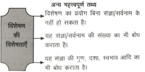 (1) विशेषण संज्ञा या सर्वनाम की विशेषता बतलाता है।