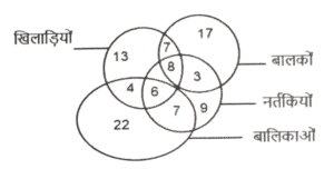 प्रश्न में दिए गए वेन आरेख से स्पष्ट रूप से हम देख सकते हैं कि बालिकाओ की संख्या जो खिलाड़ी और नर्तकियों भी है, उनकी कुल संख्या 6 है।