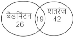इसलिए हम कह सकते हैं कि केवल बैडमिंटन खेलने वाले छात्र हैं = 45 - 19 = 26