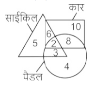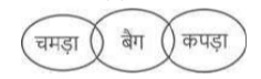 वेन आरेख (भाग-III)Total Questions: 5011. दिए गए आरेख में, कितनी साइकिल पैडल नहीं है ? [SSC CHSL 21/03/2023 (3rd Shift)](a) 8(b) 11(c) 7(d) 5Correct Answer: (b) 11Solution:सही उत्तर 6 + 5 = 11 है।12. आम, फल, केला [SSC CHSL 21/03/2023 (4th Shift)](a)(b)(c)(d)Correct Answer: (d)Solution:13. सोना, चांदी, आभूषण [SSC CPO 09/11/2022 (Morning)](a)(b)(c)(d)Correct Answer: (a)Solution:14. मनुष्य, पेशेवर व्यक्ति, लड़कियां [SSC CPO 09/11/2022 (Afternoon)](a)(b)(c)(d)Correct Answer: (c)Solution:15. हवा महल, जयपुर, राजस्थान [SSC CPO 09/11/2022 (Afternoon)](a)(b)(c)(d)Correct Answer: (a)Solution:16. बैग, चमड़ा, कपड़ा [SSC CPO 09/11/2022 (Evening)](a)(b)(c)(d)Correct Answer: (c)Solution:17. स्मारक, ताजमहल, व्हाइट हाउस [SSC CPO 09/11/2022 (Evening)](a)(b)(c)(d)Correct Answer: (d)Solution:18. खेल का मैदान, स्कूल, कॉलेज [SSC CPO 10/11/2022 (Evening)](a)(b)(c)(d)Correct Answer: (c)Solution:19. एशिया , भारत , पाकिस्तान [SSC CPO 11/11/2022 (Morning)](a)(b)(c)(d)Correct Answer: (b)Solution:20. प्रधानमंत्री, वित्त मंत्री, केंद्र सरकार [SSC CPO 11/11/2022 (Afternoon)](a)(b)(c)(d)Correct Answer: (b)Solution:Submit Quiz« Previous12345Next »