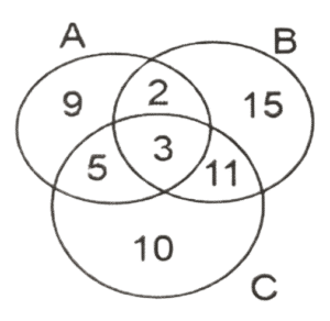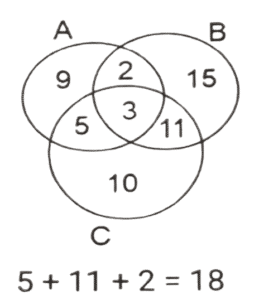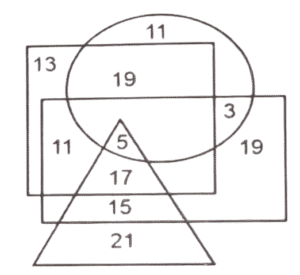 Solution:जैसा कि हम देख सकते हैं, त्रिभुज और वृत्त में शिक्षकों और महिलाओं का प्रतिनिधित्व करने वाले 3 और 9 उभयनिष्ठ हैं। अब, विवाहित महिलाओं के लिए हमें एक संख्या लेनी है जो आयत (अविवाहित लोगों का प्रतिनिधित्व करती है) में नहीं होनी चाहिए, लेकिन त्रिकोण और वृत्त दोनों में होनी चाहिए।