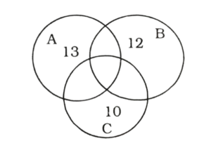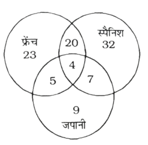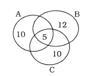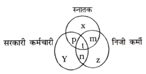वेन आरेख Type-II (201-250 प्रश्न)Total Questions: 501. निम्नलिखित आंकड़ों का अध्ययन करें और नीचे दिए गए प्रश्न का उत्तर देंः [RRB Group 'D' CBT परीक्षा, 01.11.2018 तृतीय पाली] उक्त वेन आरेख में किस अक्षर के द्वारा उस वर्ग को दर्शाया गया है जो सरकारी कर्मचारी और निजी-कर्मी भी है?(1) s(2) m(3) n(4) tCorrect Answer: (3) nSolution:वे वर्ग जिसमें सरकारी कर्मचारी व निजी कर्मी भी है = n2. निम्न वेन आरेख 50 छात्रों को दर्शाता है जो व्यवसायिक प्रशिक्षण सत्र A, B और C में भाग लेते हैं। प्रत्येक छात्र कम से कम एक प्रशिक्षण सत्र में भाग लेता है। प्रशिक्षण सत्रों में केवल दो सत्र में वास्तव में कितने छात्र भाग लेते हैं? [RRB Group 'D' CBT परीक्षा, 12.11.2018 प्रथम पाली](1) 8(2) 5(3) 13(4) 4Correct Answer: (3) 13Solution:कुछ छात्रों की संख्या = 50वैसे छात्रों की संख्या जो केवल एक तथा तीन सत्रों में भाग लेते हैं = 10 + 10 + 12 + 5 = 37अतः केवल दो सत्रों में भाग लेने वाले छात्रों की संख्या = 50 - 37 = 133. निम्नलिखित आकृति में त्रिकोण 'लड़कियों,' का और वर्ग खिलाड़ी और सर्कल कोच का प्रतिनिधित्व करता है। आरेख का कौन-सा हिस्सा उन लड़कियों का प्रतिनिधित्व करता है, जो खिलाड़ी भी हैं और कोच भी हैं? [RRB Group 'D' CBT परीक्षा, 26.11.2018 तृतीय पाली](1) S(2) 9(3) R(4) PCorrect Answer: (3) RSolution:R कोच, लकड़ी तथा खिलाड़ी है।4. दिया गया वेन आरेख कुल 50 छात्रों को दिखाता है, जो तीन विभिन्न परीक्षाओं : A, B और C में बैठे। सभी कम से कम एक परीक्षा में उपस्थित हुए। इनमें से कितने वास्तव में किसी एक परीक्षा में बैठे हैं? [RRB Group 'D' CBT परीक्षा, 26.11.2018 तृतीय पाली](1) 18(2) 20(3) 32(4) 13Correct Answer: (4) 13Solution:वास्तव में किसी एक परीक्षा में बैठे छात्रों की संख्या = 50 - (10 + 5 + 12 + 10) = 50 - 37 = 135. दिया गया वेन आरेख कॉलेज के 80 छात्रों के एक समूह की खेल प्राथमिकताओं का प्रतिनिधित्व करता है। तीन खेल A- बैडमिंटन, B- बास्केटबॉल और C- टेनिस हैं। कितने छात्र एक से अधिक खेल खेलना पसंद करते हैं? [RRB Group 'D' CBT परीक्षा, 28.11.2018 द्वितीय पाली](1) 20(2) 42(3) 35(4) 45Correct Answer: (4) 45Solution:कुल छात्रों की संख्या = 80केवल एक खेल पसंद करने वालों की संख्या = 13 + 12 + 10 = 35अतः एक से अधिक खेल पसंद करने वाले छात्रों की संख्या = 80 - 35 = 456. दिए गए वेन आरेख के आधार पर, निम्न प्रश्न का उत्तर दें। [RRB Group 'D' CBT परीक्षा, 26.09.2018 द्वितीय पाली]A. जो लोग कुशल हैं।B. जो लोग ईमानदार हैं।C. जो लोग परिश्रमी हैं।कौन-सा रेखाखण्ड उन लोगों का प्रतिनिधित्व करता है?, जो केवल मेहनती हैं लेकिन ईमानदार या कुशल नहीं हैं?(1) c - (v + s)(2) c - (v + t)(3) с(4) c (v + s + t)Correct Answer: (4) c (v + s + t)Solution:C - (V + S + t)7. इस रेखाचित्र 3 भाषाओं का अध्ययन करने वाले छात्रों की संख्या दर्शाई गई है दो भाषाओं का अध्ययन कर रहे छात्रों की संख्या है: [RRB Group 'D' CBT परीक्षा, 16.10.2018 प्रथम पाली](1) 45(2) 64(3) 32(4) 100Correct Answer: (3) 32Solution:दो भाषाओं का अध्ययन कर रहे8. चित्र एक कक्षा में 3 भाषाओं का अध्ययन करने वाले छात्रों की संख्या को दर्शाता है। कक्षा में पढ़ने वाले छात्रों की कुल संख्या कितनी 
