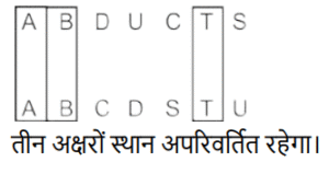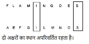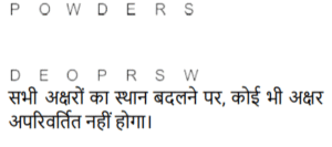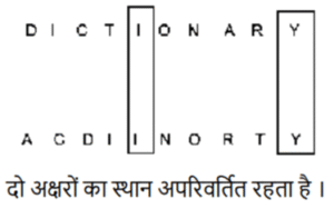 शब्दों का अनुक्रम (भाग-II)Total Questions: 5011. यदि शब्द ‘ABDUCTS’ के प्रत्येक अक्षर को अंग्रेजी वर्णानुक्रम में व्यवस्थित किया जाए तो कितने अक्षरों का स्थान अपरिवर्तित रहेगा? [SSC CHSL 02/07/2024 (1st Shift)](a) दो(b) चार(c) चार सेअधिक(d) तीनCorrect Answer: (d) तीनSolution:12. यदि शब्द DICTIONARY के प्रत्येक अक्षर को वर्णानुक्रम में व्यवस्थित किया जाए, तो कितने अक्षरों का स्थान अपरिवर्तित रहेगा? [SSC CHSL 02/07/2024 (3rd Shift)](a) 4(b) 3(c) 2(d) 1Correct Answer: (c) 2Solution:13. शब्द FRAMED के प्रत्येक अक्षर को वर्णमाला के क्रम में व्यवस्थित किया जाता है। इस प्रकार बने नए अक्षर समूह में बाएँ से दूसरे अक्षर और दाएँ से दूसरे अक्षर के बीच अँग्रेजी वर्णमाला श्रृंखला में कितने अक्षर हैं? [SSC CHSL 02/07/2024 (4th Shift)](a) आठ(b) सात(c) नौ(d) छःCorrect Answer: (a) आठSolution:दिया गया:- FRAMED वर्णमाला क्रम में व्यवस्थित करने पर हमें प्राप्त होता है ADEFMR बाएं से दूसरा D है और दाएं से दूसरा M है। अंग्रेजी वर्णमाला क्रम में D और M के बीच 8 अक्षर हैं।14. JUSTICE शब्द के प्रत्येक अक्षर को वर्णमाला क्रम में व्यवस्थित किया जाता है। इस प्रकार बने नए अक्षर समूह में बाएं से दूसरे अक्षर और दाएं से चौथे अक्षर के बीच अंग्रेजी वर्णमाला श्रृंखला में कितने अक्षर होंगे? [SSC CHSL 02/07/2024 (4th Shift)](a) 6(b) 7(c) 5(d) 4Correct Answer: (d) 4Solution:दिया गया :- JUSTICE . वर्णमाला क्रम में व्यवस्थित करने पर हमें प्राप्त होता है CEIJSTU बाएं से दूसरा E है और दाएं से चौथा J है। E और J के बीच अक्षरों की संख्या 4 है।15. यदि शब्द MENTOR के प्रत्येक अक्षर को वर्णमाला के क्रम में व्यवस्थित किया जाए, तो कितने अक्षरों का स्थान अपरवर्तित रहेगा? [SSC CHSL 03/07/2024 (2nd Shift)](a) एक(b) एक का भी नहीं(c) दो(d) तीनCorrect Answer: (a) एकSolution:16. यदि शब्द SOUNDBAR के प्रत्येक अक्षर को वर्णमाला के क्रम में व्यवस्थित किया जाए, तो कितने अक्षरों के स्थान अपरिवर्तित रहेगा? [SSC CHSL 04/07/2024 (1st Shift)](a) दो(b) तीन(c) एक(d) चारCorrect Answer: (c) एकSolution:17. यदि शब्द FLAMINGOES के प्रत्येक अक्षर को बाएं से दाएं वर्णमाला क्रम में व्यवस्थित किया जाता है, तो कितने अक्षरों का स्थान परिवर्तित नहीं होगा? [SSC CHSL 04/07/2024 (3rd Shift)](a) किसी का भी नहीं(b) एक(c) तीन(d) दोCorrect Answer: (d) दोSolution:18. यदि शब्द ‘COUNTED’ के प्रत्येक अक्षर को अंग्रेजी वर्णानुक्रम में व्यवस्थित किया जाए तो कितने अक्षरों का स्थान अपरिवर्तित रहेगा ? [SSC CHSL 04/07/2024 (4th Shift)](a) तीन(b) तीन सेअधिक(c) एक का भी नहीं(d) दोCorrect Answer: (d) दोSolution:19. यदि शब्द ‘POWDERS’ के प्रत्येक अक्षर को अंग्रेजी वर्णानुक्रम में व्यवस्थित किया जाए तो कितने अक्षरों का स्थान अपरिवर्तित रहेगा ? [SSC CHSL 04/07/2024 (4th Shift)](a) एक(b) तीन सेअधिक(c) एक का भी नहीं(d) तीनCorrect Answer: (c) एक का भी नहींSolution:20. यदि शब्द DIALECT के सभी अक्षरों को वर्णानुक्रम में व्यवस्थित किया जाए, तो कितने अक्षरों का स्थान अपरिवर्तित रहेगा? [SSC CHSL 05/07/2024 (2nd Shift)](a) तीन(b) एक(c) चार(d) दोCorrect Answer: (b) एकSolution:Submit Quiz« Previous12345Next »