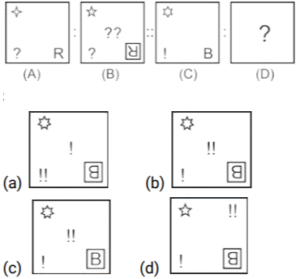 श्रृंखला गैर-मौखिक (भाग-I)Total Questions: 5031. उस आकृति का चयन करें जो प्रश्नवाचक चिह्न (?) की जगह लेगी या निम्नलिखित आकृति श्रृंखला में आगे आएगी। [SSC Stenographer 10/12/2024 (Morning)](a)(b)(c)(d)Correct Answer: (c)Solution:32. उस आकृति का चयन करें जो प्रश्नवाचक चिह्न (?) की जगह लेगी या निम्नलिखित आकृति श्रृंखला में आगे आएगी। [SSC Stenographer 10/12/2024 (Afternoon)](a)(b)(c)(d)Correct Answer: (b)Solution:33. उस आकृति का चयन करें जो प्रश्नवाचक चिह्न (?) की जगह लेगी या निम्नलिखित आकृति श्रृंखला में आगे आएगी। [SSC Stenographer 10/12/2024 (Evening)](a)(b)(c)(d)Correct Answer: (c)Solution:34. उस आकृति का चयन करें जो प्रश्नवाचक चिह्न (?) की जगह लेगी या निम्नलिखित आकृति श्रृंखला में आगे आएगी। [SSC Stenographer 11/12/2024 (Afternoon)](a)(b)(c)(d)Correct Answer: (b)Solution:35. उस आकृति का चयन करें जो प्रश्नवाचक चिह्न (?) की जगह लेगी या निम्नलिखित आकृति श्रृंखला में आगे आएगी। [SSC Stenographer 11/12/2024 (Evening)](a)(b)(c)(d)Correct Answer: (c)Solution:36. उस आकृति का चयन करें जो प्रश्नवाचक चिह्न (?) की जगह लेगी या निम्नलिखित आकृति श्रृंखला में आगे आएगी। [SSC CHSL Tier II (18/11/2024)]उस विकल्प का चयन कीजिए जो आकृति C से ठीक उसी प्रकार संबंधित है, जिस प्रकार आकृति B आकृति A से संबंधित है। (a)(b)(c)(d)Correct Answer: (b)Solution:37. उस आकृति का चयन करें जो प्रश्नवाचक चिह्न (?) की जगह लेगी या निम्नलिखित आकृति श्रृंखला में आगे आएगी। [SSC CHSL Tier II (18/11/2024)](a)(b)(c)(d)Correct Answer: (a)Solution:38. उस आकृति का चयन करें जो प्रश्नवाचक चिह्न (?) की जगह लेगी या निम्नलिखित आकृति श्रृंखला में आगे आएगी। [SSC MTS 30/09/2024 (Morning)](a)(b)(c)(d)Correct Answer: (c)Solution:39. उस आकृति का चयन करें जो प्रश्नवाचक चिह्न (?) की जगह लेगी या निम्नलिखित आकृति श्रृंखला में आगे आएगी। [SSC MTS 30/09/2024 (Morning)](a)(b)(c)(d)Correct Answer: (c)Solution:40. उस आकृति का चयन करें जो प्रश्नवाचक चिह्न (?) की जगह लेगी या निम्नलिखित आकृति श्रृंखला में आगे आएगी। [SSC MTS 30/09/2024 (Afternoon)](a)(b)(c)(d)Correct Answer: (c)Solution:Submit Quiz« Previous12345Next »