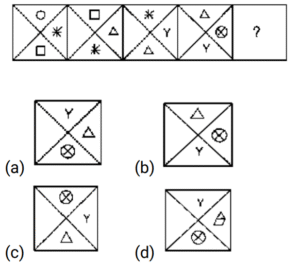 श्रृंखला गैर-मौखिक (भाग-V)Total Questions: 5021. उस आकृति का चयन करें जो प्रश्नवाचक चिह्न (?) की जगह लेगी या निम्नलिखित आकृति श्रृंखला में आगे आएगी। [SSC CHSL 11/08/2023 (4th Shift)](a)(b)(c)(d)Correct Answer: (d)Solution:22. उस आकृति का चयन करें जो प्रश्नवाचक चिह्न (?) की जगह लेगी या निम्नलिखित आकृति श्रृंखला में आगे आएगी। [SSC CHSL 14/08/2023 (1st Shift)](a)(b)(c)(d)Correct Answer: (c)Solution:23. उस आकृति का चयन करें जो प्रश्नवाचक चिह्न (?) की जगह लेगी या निम्नलिखित आकृति श्रृंखला में आगे आएगी। [SSC CHSL 17/08/2023 (2nd Shift)](a)(b)(c)(d)Correct Answer: (c)Solution:24. उस आकृति का चयन करें जो प्रश्नवाचक चिह्न (?) की जगह लेगी या निम्नलिखित आकृति श्रृंखला में आगे आएगी। [SSC CGL 14/07/2023 (1st shift)](a)(b)(c)(d)Correct Answer: (d)Solution:25. उस आकृति का चयन करें जो प्रश्नवाचक चिह्न (?) की जगह लेगी या निम्नलिखित आकृति श्रृंखला में आगे आएगी। [SSC CGL 14/07/2023 (2nd shift)](a)(b)(c)(d)Correct Answer: (d)Solution:26. उस आकृति का चयन करें जो प्रश्नवाचक चिह्न (?) की जगह लेगी या निम्नलिखित आकृति श्रृंखला में आगे आएगी। [SSC CGL 14/07/2023 (3rd shift)](a)(b)(c)(d)Correct Answer: (d)Solution:27. उस आकृति का चयन करें जो प्रश्नवाचक चिह्न (?) की जगह लेगी या निम्नलिखित आकृति श्रृंखला में आगे आएगी। [SSC CGL 14/07/2023 (4th shift)](a)(b)(c)(d)Correct Answer: (b)Solution:28. उस आकृति का चयन करें जो प्रश्नवाचक चिह्न (?) की जगह लेगी या निम्नलिखित आकृति श्रृंखला में आगे आएगी। [SSC CGL 14/07/2023 (4th shift)](a)(b)(c)(d)Correct Answer: (b)Solution:29. उस आकृति का चयन करें जो प्रश्नवाचक चिह्न (?) की जगह लेगी या निम्नलिखित आकृति श्रृंखला में आगे आएगी। [SSC CGL 17/07/2023 (1st shift)](a)(b)(c)(d)Correct Answer: (c)Solution:30. उस आकृति का चयन करें जो प्रश्नवाचक चिह्न (?) की जगह लेगी या निम्नलिखित आकृति श्रृंखला में आगे आएगी। [SSC CGL 17/07/2023 (4th shift)](a)(b)(c)(d)Correct Answer: (b)Solution:Submit Quiz« Previous12345Next »