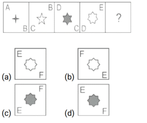 श्रृंखला गैर-मौखिक (भाग-V)Total Questions: 5041. उस आकृति का चयन करें जो प्रश्नवाचक चिह्न (?) की जगह लेगी या निम्नलिखित आकृति श्रृंखला में आगे आएगी। [SSC CGL 25/07/2023 (2nd shift)](a)(b)(c)(d)Correct Answer: (d)Solution:42. उस आकृति का चयन करें जो प्रश्नवाचक चिह्न (?) की जगह लेगी या निम्नलिखित आकृति श्रृंखला में आगे आएगी। [SSC CGL 25/07/2023 (4th shift)](a)(b)(c)(d)Correct Answer: (c)Solution:43. उस आकृति का चयन करें जो प्रश्नवाचक चिह्न (?) की जगह लेगी या निम्नलिखित आकृति श्रृंखला में आगे आएगी। [SSC CGL 26/07/2023 (1st shift)](a)(b)(c)(d)Correct Answer: (c)Solution:44. उस आकृति का चयन करें जो प्रश्नवाचक चिह्न (?) की जगह लेगी या निम्नलिखित आकृति श्रृंखला में आगे आएगी। [SSC CGL 26/07/2023 (2nd shift)](a)(b)(c)(d)Correct Answer: (b)Solution:45. उस आकृति का चयन करें जो प्रश्नवाचक चिह्न (?) की जगह लेगी या निम्नलिखित आकृति श्रृंखला में आगे आएगी। [SSC CGL 26/07/2023 (3rd shift)](a)(b)(c)(d)Correct Answer: (a)Solution:46. उस आकृति का चयन करें जो प्रश्नवाचक चिह्न (?) की जगह लेगी या निम्नलिखित आकृति श्रृंखला में आगे आएगी। [SSC CGL 27/07/2023 (2nd shift)](a)(b)(c)(d)Correct Answer: (b)Solution:47. उस आकृति का चयन करें जो प्रश्नवाचक चिह्न (?) की जगह लेगी या निम्नलिखित आकृति श्रृंखला में आगे आएगी। [SSC CGL 27/07/2023 (3rd shift)](a)(b)(c)(d)Correct Answer: (d)Solution:48. उस आकृति का चयन करें जो प्रश्नवाचक चिह्न (?) की जगह लेगी या निम्नलिखित आकृति श्रृंखला में आगे आएगी। [Graduate Level 27/06/2023 (Shift - 4)](a)(b)(c)(d)Correct Answer: (c)Solution:49. उस आकृति का चयन करें जो प्रश्नवाचक चिह्न (?) की जगह लेगी या निम्नलिखित आकृति श्रृंखला में आगे आएगी। [Graduate Level 30/06/2023 (Shift - 1)](a)(b)(c)(d)Correct Answer: (d)Solution:50. उस आकृति का चयन करें जो प्रश्नवाचक चिह्न (?) की जगह लेगी या निम्नलिखित आकृति श्रृंखला में आगे आएगी। [Higher Secondary 30/06/2023 (Shift - 2)](a)(b)(c)(d)Correct Answer: (b)Solution:Submit Quiz« Previous12345
