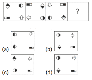 श्रृंखला गैर-मौखिक (भाग-VII)Total Questions: 5431. उस आकृति का चयन करें जो प्रश्नवाचक चिह्न (?) की जगह लेगी या निम्नलिखित आकृति श्रृंखला में आगे आएगी। [SSC CGL 20/4/2022(Afternoon)](a)(b)(c)(d)Correct Answer: (d)Solution:32. उस आकृति का चयन करें जो प्रश्नवाचक चिह्न (?) की जगह लेगी या निम्नलिखित आकृति श्रृंखला में आगे आएगी। [SSC CGL 21/4/2022(Morning)](a)(b)(c)(d)Correct Answer: (a)Solution:33. उस आकृति का चयन करें जो प्रश्नवाचक चिह्न (?) की जगह लेगी या निम्नलिखित आकृति श्रृंखला में आगे आएगी। [SSC CGL 21/4/2022(Afternoon)](a)(b)(c)(d)Correct Answer: (b)Solution:34. उस आकृति का चयन करें जो प्रश्नवाचक चिह्न (?) की जगह लेगी या निम्नलिखित आकृति श्रृंखला में आगे आएगी। [SSC MTS 06/10/2021 (Evening)](a)(b)(c)(d)Correct Answer: (c)Solution:35. उस आकृति का चयन करें जो प्रश्नवाचक चिह्न (?) की जगह लेगी या निम्नलिखित आकृति श्रृंखला में आगे आएगी। [SSC MTS 07/10/2021 (Evening)](a)(b)(c)(d)Correct Answer: (d)Solution:36. उस आकृति का चयन करें जो प्रश्नवाचक चिह्न (?) की जगह लेगी या निम्नलिखित आकृति श्रृंखला में आगे आएगी। [SSC CGL 18/08/2021 (Morning)](a)(b)(c)(d)Correct Answer: (d)Solution:37. उस आकृति का चयन करें जो प्रश्नवाचक चिह्न (?) की जगह लेगी या निम्नलिखित आकृति श्रृंखला में आगे आएगी। [SSC CGL 18/08/2021 (Afternoon)](a)(b)(c)(d)Correct Answer: (a)Solution:38. उस आकृति का चयन करें जो प्रश्नवाचक चिह्न (?) की जगह लेगी या निम्नलिखित आकृति श्रृंखला में आगे आएगी। [SSC CGL 20/08/2021 (Evening)](a)(b)(c)(d)Correct Answer: (d)Solution:39. उस आकृति का चयन करें जो प्रश्नवाचक चिह्न (?) की जगह लेगी या निम्नलिखित आकृति श्रृंखला में आगे आएगी। [SSC CGL 23/08/2021 (Afternoon)](a)(b)(c)(d)Correct Answer: (b)Solution:40. उस आकृति का चयन करें जो प्रश्नवाचक चिह्न (?) की जगह लेगी या निम्नलिखित आकृति श्रृंखला में आगे आएगी। [SSC CHSL 12/04/2021 (Afternoon)](a)(b)(c)(d)Correct Answer: (a)Solution:Submit Quiz« Previous123456Next »