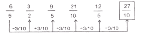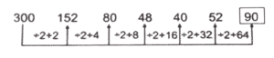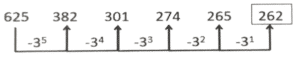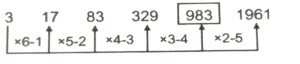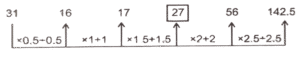 श्रृंखला (भाग-I)Total Questions: 501. 31, 16, 17, ?, 56, 142.5 [SSC Stenographer 11/12/2024 (Evening)](a) 25(b) 27(c) 49(d) 36Correct Answer: (b) 27Solution:2. 8796, 4392, 1092, 176, ?, -4.4 [SSC MTS 09/10/2024 (Afternoon)](a) 16(b) 22(c) 38(d) 11.6Correct Answer: (a) 16Solution:3. [6/5], [3/2], [9/5], [21/10], [12/5], ? [SSC MTS 07/10/2024 (Evening)](a) 5/2(b) 27/10(c) 29/10(d) 9/2Correct Answer: (b) 27/10Solution:4. 16, 8.5, 9.5, 15.75, 33.5, ? [SSC MTS 07/10/2024 (Afternoon)](a) 69(b) 83.75(c) 67(d) 86.25Correct Answer: (d) 86.25Solution:5. 30, 22, 36, 75, 178, ? [ SSC CGL 26/09/2024 (1st Shift)](a) 343(b) 480(c) 361(d) 400Correct Answer: (b) 480Solution:6. ABF_HI_NOP_U_WABCDH_ [SSC CGL 23/09/2024 (1st Shift)](a) GMTUI(b) IMTVI(c) GMSVI(d) GMTVICorrect Answer: (d) GMTVISolution:7. 625, 382, 301, 274, 265, ? [SSC CGL 19/09/2024 (2nd Shift)](a) 258(b) 248(c) 262(d) 260Correct Answer: (c) 262Solution:8. 3, 17, 83, 329, ?, 1961 [SSC CGL 19/09/2024 (1st Shift)](a) 983(b) 883(c) 880(d) 980Correct Answer: (a) 983Solution:9. 300, 152, 80, 48, 40, 52, ? [SSC CGL 18/09/2024 (1st Shift)](a) 60(b) 80(c) 90(d) 100Correct Answer: (c) 90Solution:10. 30, 20, ?, 60, 140 [SSC CGL 13/09/2024 (1st Shift)](a) 30(b) 35(c) 40(d) 25Correct Answer: (a) 30Solution:Submit Quiz12345Next »