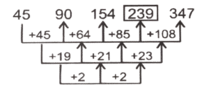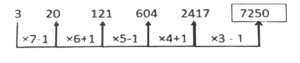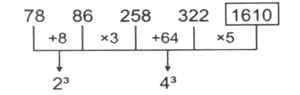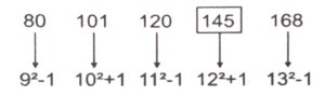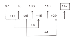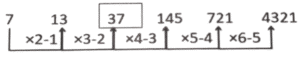 श्रृंखला (भाग-I)Total Questions: 5011. 7, 13, ?, 145, 721, 4321 [SSC CGL 12/09/2024 (3rd Shift)](a) 23(b) 36(c) 25(d) 37Correct Answer: (d) 37Solution:12. fd_e_ef_dd_d_ff_d_d_f [SSC CGL 12/09/2024 (3rd Shift)](a) ddfeeded(b) ddfefdee(c) ddfdedef(d) ddfeedeeCorrect Answer: (d) ddfeedeeSolution:13. E_GHEI_GELK_ _OME [SSC CGL 12/09/2024 (2nd Shift)](a) IGFE(b) IFGE(c) FIFE(d) FGEICorrect Answer: (c) FIFESolution:14. 3, 20, 121, 604, 2417,? [SSC CGL 11/09/2024 (2nd Shift)](a) 7275(b) 7250(c) 7200(d) 7300Correct Answer: (b) 7250Solution:15. अक्षरों के उस संयोजन का चयन कीजिए, जो दी गई श्रृंखला में रिक्त स्थानों में क्रमिक रूप से रखे जाने पर श्रृंखला को तार्किक रूप से पूरा करेगा। [SSC CHSL 01/07/2024 (1st Shift)]A_A_CAB_B_A_ _ BCABA_C(a) BBACBAB(b) BBABBCB(c) BBACABB(d) BABACBACorrect Answer: (a) BBACBABSolution:16. 67, 78, 103, 118, ? [SSC CPO 29/06/2024 (1st Shift)](a) 147(b) 241(c) 171(d) 184Correct Answer: (a) 147Solution:17. 80, 101, 120, ?, 168 [SSC CPO 28/06/2024 (3rd Shift)](a) 147(b) 143(c) 145(d) 149Correct Answer: (c) 145Solution:18. 78, 86, 258, 322, ? [SSC CPO 28/06/2024 (2nd Shift)](a) 1288(b) 1360(c) 1420(d) 1610Correct Answer: (d) 1610Solution:19. 45, 90, 154, ?, 347 [SSC CPO 27/06/2024 (2nd Shift)](a) 248(b) 273(c) 239(d) 256Correct Answer: (c) 239Solution:20. 5, 3, 20, 9, 80, 27, 320, ? [Matriculation Level 20/06/2024 (Shift - 4)](a) 100(b) 89(c) 81(d) 90Correct Answer: (c) 81Solution:Submit Quiz« Previous12345Next »