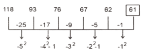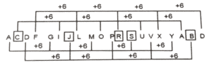 श्रृंखला (भाग-I)Total Questions: 5021. CDG_IJ _ Z O _ SZ _VYZ_BEZ [SSC CHSL Tier II 02/11/2023](a) ZMPUA(b) OJGFU(c) FUGUI(d) FJONICorrect Answer: (a) ZMPUASolution:22. A_DF GI_L MOP_ _UVX YA_D [SSC CGL Tier II 26/10/2023](a) BJQRB(b) CJRSB(c) BJRSB(d) CJQRBCorrect Answer: (b) CJRSBSolution:23. 18, 6, 2, ?, 2/9 [SSC CPO 05/10/2023 (2nd Shift)](a) 1/9(b) 1(c) 2/3(d) 1/3Correct Answer: (c) 2/3Solution:24. BPR, FRV, JTZ, NVD, ? [SSC MTS 12/09/2023 (2nd Shift)](a) QYG(b) SXI(c) QXG(d) RXHCorrect Answer: (d) RXHSolution:25. 20 54 156? 1380 4134 12396 [SSC MTS 08/09/2023 (2nd Shift)](a) 506(b) 474(c) 358(d) 462Correct Answer: (d) 462Solution:26. 5475, 1100, 225, 50, 7, 8, 6.6 [SSC CGL 20/07/2023 (3rd shift)](a) 30(b) 15(c) 20(d) 25Correct Answer: (b) 15Solution:27. RD, JF, DJ, ZP, ? [SSC CGL 12/12/2022 (3rd Shift)](a) XY(b) YY(c) XX(d) WXCorrect Answer: (c) XXSolution:28. 7, 21, 63, 189, 567, ? [SSC CGL 07/12/2022 (3rd Shift)](a) 1701(b) 1800(c) 1720(d) 1781Correct Answer: (a) 1701Solution:29. 1331, 2197, ?, 6859 [SSC CGL 01/12/2022 (3rd Shift)](a) 4913(b) 5832(c) 4096(d) 3375Correct Answer: (a) 4913Solution:30. 118, 93, 76, 67, 62, ? [SSC CPO 11/11/2022 (Evening)](a) 59(b) 60(c) 61(d) 58Correct Answer: (c) 61Solution:Submit Quiz« Previous12345Next »