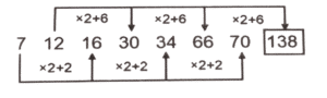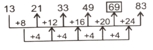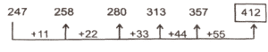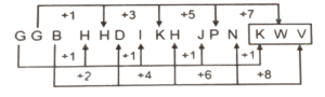 श्रृंखला (भाग-II)Total Questions: 5031. HAF, KDI, NGL, QJO, ? [SSC MTS 30/09/2024 (Evening)](a) PQR(b) RTW(c) TMR(d) SKPCorrect Answer: (c) TMRSolution:32. TKU, UNP, VQK, WTF, ? [SSC MTS 01/10/2024 (Morning)](a) XXA(b) WAW(c) XWA(d) YXBCorrect Answer: (c) XWASolution:33. GGB, HHD, IKH, JPN, ? [SSC MTS 07/10/2024 (Morning)](a) OUV(b) OWV(c) KWV(d) PUVCorrect Answer: (c) KWVSolution:34. 7 12 16 30 34 66 70 ? [SSC MTS 08/10/2024 (Morning)](a) 136(b) 138(c) 142(d) 140Correct Answer: (b) 138Solution:35. 247 258 280 313 357 ? [SSC MTS 16/10/2024 (Morning)](a) 426(b) 401(c) 412(d) 388Correct Answer: (b) 401Solution:36. 5040, 6064, 6576, 6832, 6960, ? [SSC MTS 16/10/2024 (Afternoon)](a) 7472(b) 7024(c) 7088(d) 7216Correct Answer: (b) 7024Solution:37. 7 ? 22 37 57 82 [SSC MTS 21/10/2024 (Morning)](a) 17(b) 20(c) 10(d) 12Correct Answer: (d) 12Solution:38. निम्नलिखित श्रृंखला में लुप्त पद ज्ञात कीजिए: [SSC MTS 22/10/2024 (Morning)]B2, C3, E5, G7,__, M13, Q17.(a) 110(b) K11(c) J10(d) H7Correct Answer: (b) K11Solution:d39. ISC, GPF, EMI, CJL, ? [SSC MTS 23/10/2024 (Morning)](a) AGO(b) BGP(c) BGO(d) AGPCorrect Answer: (a) AGOSolution:40. 13 21 33 49 ? 93 [SSC MTS 23/10/2024 (Afternoon)](a) 74(b) 69(c) 82(d) 79Correct Answer: (b) 69Solution:Submit Quiz« Previous12345Next »
