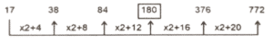 श्रृंखला (भाग-III)Total Questions: 5011. PQ _ S _ PPQP _ APPQ _ SAP _ Q [SSC CGL 10/09/2024 (3rd Shift)](a) QPASP(b) PQSAP(c) PASPP(d) QSPAPCorrect Answer: (c) PASPPSolution:12. qp _ r _ rq _ p _ rp _ q _ pr _ p _ q [SSC CGL 11/09/2024 (1st Shift)](a) rpqrrprq(b) rpqrrqrr(c) rpqqrqrp(d) rpqrrqrpCorrect Answer: (b) rpqrrqrrSolution:13. GASM, CCOO, YEKQ, ?, QICU [SSC CGL 11/09/2024 (1st Shift)](a) UGGS(b) UCGS(c) UGGT(d) TGFSCorrect Answer: (a) UGGSSolution:14. 17, 38, 84, ?, 376, 772 [SSC CGL 11/09/2024 (1st Shift)](a) 190(b) 200(c) 180(d) 150Correct Answer: (c) 180Solution:15. DBOI, FEQL, ?, JKUR, LNWU [SSC CGL 11/09/2024 (2nd Shift)](a) HISP(b) IHSP(c) HHSO(d) HISOCorrect Answer: (c) HHSOSolution:16. _ C _ W _ _ _C _ W _ _ [SSC CGL 11/09/2024 (2nd Shift)](a) WCCWWWCC(b) WWCWWWCW(c) CWCWWCCW(d) CCWWCCWWCorrect Answer: (b) WWCWWWCWSolution:17. BYN _ J _YNF _ X _ NFJVY _ FJ [SSC CGL 11/09/2024 (3rd Shift)](a) FZJYN(b) FNJYV(c) FZYVJ(d) FJZNYCorrect Answer: (a) FZJYNSolution:18. 12, 25, 49, ?, 197, 395 [SSC CGL 11/09/2024 (3rd Shift)](a) 100(b) 121(c) 99(d) 96Correct Answer: (c) 99Solution:19. IMHP, MPJQ, QSLR, UVNS, ? [SSC CGL 12/09/2024 (1st Shift)](a) YYPT(b) YYOT(c) YXPT(d) XYPTCorrect Answer: (a) YYPTSolution:20. HPL, KLQ, NHV, QDA, TZF, ? [SSC CGL 12/09/2024 (2nd Shift)](a) WVK(b) XVK(c) WDK(d) XWKCorrect Answer: (a) WVKSolution:Submit Quiz« Previous12345Next »