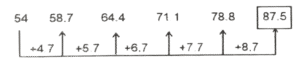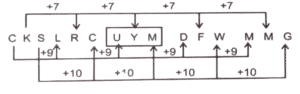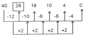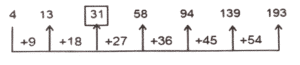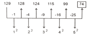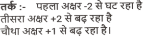 श्रृंखला (भाग-IV)Total Questions: 5021. 40 ? 1810 4 0 [SSC CHSL 01/07/2024 (1st Shift)](a) 28(b) 25(c) 22(d) 30Correct Answer: (a) 28Solution:22. 129, 128, 124, 115, 99, ? [SSC CHSL 01/07/2024 (1st Shift)](a) 71(b) 73(c) 74(d) 72Correct Answer: (c) 74Solution:23. FNV LUE ? XIW DPF [SSC CHSL 01/07/2024 (1st Shift)](a) RBN(b) HRY(c) GQZ(d) UWZCorrect Answer: (a) RBNSolution:24. अक्षरों के उस संयोजन का चयन कीजिए जिसे दी गई श्रृंखला के रिक्त स्थानों में क्रमिक रूप से रखने पर श्रृंखला पूरी हो जाएगी। [SSC CHSL 01/07/2024 (2nd Shift)]KJ_HIJKI_JM_EJ_K (a) IMKR(b) GIJO(c) KJOM(d) IGJOCorrect Answer: (d) IGJOSolution:25. 54, 58.7, 64.4, 71.1, 78.8, ? [SSC CHSL 01/07/2024 (2nd Shift)](a) 86.8(b) 87.5(c) 85.1(d) 84.4Correct Answer: (b) 87.5Solution:26. ZRJ, EUK, JXL, ?, TDN [SSC CHSL 01/07/2024 (2nd Shift)](a) OAM(b) HST(c) WNE(d) QHRCorrect Answer: (a) OAMSolution:27. CKS LRC ? DFW MMG [SSC CHSL 01/07/2024 (3rd Shift)](a) HGO(b) VMO(c) YAM(d) UYMCorrect Answer: (d) UYMSolution:28. 4 13 ? 58 94 139 193 [SSC CHSL 01/07/2024 (3rd Shift)](a) 36(b) 31(c) 27(d) 26Correct Answer: (b) 31Solution:29. LDP, GHO, BLN, WPM, ? [SSC CHSL 01/07/2024 (3rd Shift)](a) RSN(b) QSM(c) RTL(d) QSNCorrect Answer: (c) RTLSolution:30. np _ rr _ p _ mm _ pq _ rq _ n m _ np _ rrq _ nm [SSC CHSL 01/07/2024 (4th Shift)](a) mqqrnrpmqp(b) mqqnnrpmqp(c) mrqnnrmpqp(d) mqqrnnpmqpCorrect Answer: (b) mqqnnrpmqpSolution:Submit Quiz« Previous12345Next »
