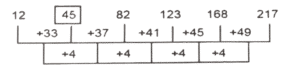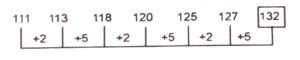 श्रृंखला (भाग-IX)Total Questions: 5041. 12, ?, 82, 123, 168, 217 [SSC CHSL 02/08/2023 (2nd Shift)](a) 63(b) 45(c) 51(d) 42Correct Answer: (b) 45Solution:42. G_IJG_HIJGGH_IJGGHH_IJ [SSC CHSL 02/08/2023 (2nd Shift)](a) HIJG(b) HGHI(c) JGGJ(d) GHHICorrect Answer: (b) HGHISolution:43. ZN_T, W_DX, VAB, QZX, N_UJ [SSC CHSL 02/08/2023 (2nd Shift)](a) FQSED(b) GRTFD(c) ESRFG(d) FQREDCorrect Answer: (b) GRTFDSolution:44. VPA, SMX, ?, MGR, JDO [SSC CHSL 02/08/2023 (2nd Shift)](a) PJU(b) RKU(c) QGV(d) QIWCorrect Answer: (a) PJUSolution:45. 4, 7, 13, 22, ?, 49, 67 [SSC CHSL 02/08/2023 (3rd Shift)](a) 33(b) 30(c) 34(d) 35Correct Answer: (c) 34Solution:46. J_SX, _WUT, NS_P,_OYL, RKA [SSC CHSL 02/08/2023 (3rd Shift)](a) AKVML(b) ALWPH(c) ALWLK(d) AKUOGCorrect Answer: (b) ALWPHSolution:47. 111, 113, 118, 120, 125, 127, ? [SSC CHSL 02/08/2023 (3rd Shift)](a) 136(b) 132(c) 130(d) 134Correct Answer: (b) 132Solution:48. Z_TSVZV_R_XANP_E [SSC CHSL 02/08/2023 (3rd Shift)](a) RWHA(b) HZPX(c) RWHZ(d) UROHCorrect Answer: (c) RWHZSolution:49. PSU, GBL, ?, OTT, FCK [SSC CHSL 02/08/2023 (4th Shift)](a) ATC(b) UBH(c) XKC(d) ZKGCorrect Answer: (c) XKCSolution:50. 4, 16, 13, ?, 49, 196 [SSC CHSL 02/08/2023 (4th Shift)](a) 38(b) 31(c) 44(d) 52Correct Answer: (d) 52Solution:Submit Quiz« Previous12345