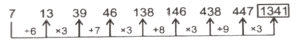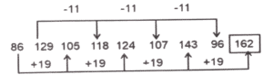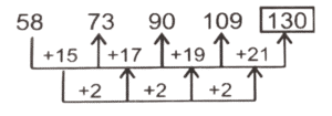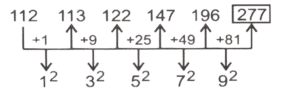 श्रृंखला (भाग-V)Total Questions: 5031. GDJ, KHN, OLR, SPV, ? [SSC CHSL 09/07/2024 (1st Shift)](a) WUZ(b) WTZ(c) VSX(d) VTYCorrect Answer: (b) WTZSolution:32. 7 13 39 46 138 146 438 447 ? [SSC CHSL 09/07/2024 (2nd Shift)](a) 1138(b) 1146(c) 1341(d) 1247Correct Answer: (c) 1341Solution:33. UME, OPG, ISJ, EVN, ? [SSC CHSL 09/07/2024 (2nd Shift)](a) BYS(b) AXS(c) AYS(d) AYRCorrect Answer: (c) AYSSolution:34. [37/5] [32/5] [27/5] [22/5] [17/5] ? [SSC CHSL 09/07/2024 (2nd Shift)](a) [14/5](b) [9/5](c) [16/5](d) [12/5]Correct Answer: (d) [12/5]Solution:35. 58, 73, 90, 109, ? [SSC CHSL 09/07/2024 (2nd Shift)](a) 301(b) 310(c) 103(d) 130Correct Answer: (d) 130Solution:36. 126 1236 12336 123336 1233336 ? [SSC CHSL 09/07/2024 (3rd Shift)](a) 12333336(b) 12333363(c) 12333366(d) 1233633Correct Answer: (a) 12333336Solution:37. 86 129 105 118 124 107 143 96 ? [SSC CHSL 09/07/2024 (3rd Shift)](a) 149(b) 153(c) 138(d) 162Correct Answer: (d) 162Solution:38. JKL, LHP, NET, ?, RYB, TVF [SSC CHSL 09/07/2024 (3rd Shift)](a) RAL(b) COL(c) POF(d) PBXCorrect Answer: (d) PBXSolution:39. 112 113 122 147 196 ? [SSC CHSL 09/07/2024 (4th Shift)](a) 294(b) 253(c) 282(d) 277Correct Answer: (d) 277Solution:40. RPM, USP, XVS, AYV, ? [SSC CHSL 09/07/2024 (4th Shift)](a) BYD(b) DYB(c) BDY(d) DBYCorrect Answer: (d) DBYSolution:Submit Quiz« Previous12345Next »
