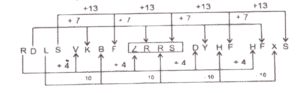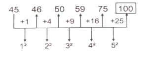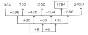 श्रृंखला (भाग-VI)Total Questions: 5021. 324, 722, 1200, ?, 2420 [SSC CPO 27/06/2024 (3rd Shift)](a) 1736(b) 1632(c) 1764(d) 1634Correct Answer: (c) 1764Solution:22. 55, 62, ?, 72, 75, 82 [SSC CPO 28/06/2024 (1st Shift)](a) 68(b) 71(c) 69(d) 65Correct Answer: (d) 65Solution:23. DHMX, GJKU,____, MNGO [SSC CPO 28/06/2024 (1st Shift)](a) IMIR(b) JLIS(c) IMIS(d) JLIRCorrect Answer: (d) JLIRSolution:24. WTNM, SYHT, ?, KIVH, GNPO [SSC CPO 28/06/2024 (1st Shift)](a) OFHA(b) ODBA(c) UIDS(d) HREKCorrect Answer: (b) ODBASolution:25. -32, -8, -2, ?, - 1/8 [SSC CPO 28/06/2024 (2nd Shift)](a) - 1/4(b) -1(c) -4(d) - 1/2Correct Answer: (d) - 1/2Solution:26. ADO, DGR, GJU,? [SSC CPO 28/06/2024 (2nd Shift)](a) LON(b) JCB(c) JMX(d) RCBCorrect Answer: (c) JMXSolution:27. RDLS, VKBF, ?, DYHF, HFXS [SSC CPO 28/06/2024 (2nd Shift)](a) FHWR(b) ZTTS(c) ZRRS(d) KBETCorrect Answer: (c) ZRRSSolution:28. 125, 150, 177, 207, 242, ? [SSC CPO 28/06/2024 (2nd Shift)](a) 280(b) 284(c) 282(d) 290Correct Answer: (b) 284Solution:29. YFJW, BJEC, ?, HRUO, KVPU [SSC CPO 28/06/2024 (3rd Shift)](a) NWRF(b) TDFI(c) ENZI(d) EHSICorrect Answer: (c) ENZISolution:30. 45, 46, 50, 59, 75, ? [SSC CPO 28/06/2024 (3rd Shift)](a) 95(b) 90(c) 105(d) 100Correct Answer: (d) 100Solution:Submit Quiz« Previous12345Next »