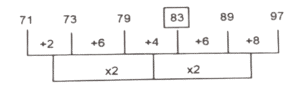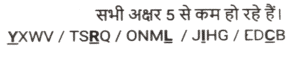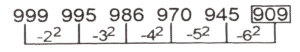 श्रृंखला (भाग-X)Total Questions: 5011. LT 48, ?, NV 42, OW 39, PX 36 [SSC CHSL 04/08/2023 (1st Shift)](a) MU 45(b) NU 44(c) NS 44(d) MS 46Correct Answer: (a) MU 45Solution:12. 999, 995, 986, 970, 945, ? [SSC CHSL 04/08/2023 (1st Shift)](a) 909(b) 905(c) 901(d) 906Correct Answer: (a) 909Solution:13. W_KY_ENC YG_G ZIT_ _KWO [SSC CHSL 04/08/2023 (1st Shift)](a) BXQGA(b) CXQKA(c) AYQGB(d) DXRKACorrect Answer: (b) CXQKASolution:14. _XWV TS_Q ONM J_HG ED_B [SSC CHSL 04/08/2023 (2nd Shift)](a) YRLKA(b) YRLIC(c) ZRLKA(d) ZRLIACorrect Answer: (b) YRLICSolution:15. B_RG FK_F JIX_ NGA_ _EDC [SSC CHSL 04/08/2023 (3rd Shift)](a) NUFER(b) MUEDR(c) NVDEQ(d) MVEFQCorrect Answer: (b) MUEDRSolution:16. ZY_V U_RQ_OML KJ_G F_CB [SSC CHSL 04/08/2023 (4th Shift)](a) XSPID(b) WTPID-18140(c) XSPHE(d) WTPHECorrect Answer: (d) WTPHESolution:17. 71, 73, 79, ?, 89, 97 [SSC CHSL 04/08/2023 (4th Shift)](a) 81(b) 90(c) 83(d) 84Correct Answer: (c) 83Solution:18. P_ RSPG _ SP _ LSPM _ S [SSC CHSL 04/08/2023 (4th Shift)](a) CWZO(b) BWVQ(c) ABXY(d) QBWVCorrect Answer: (d) QBWVSolution:19. 74, 93, ?, 145, 176, 213 [SSC CHSL 04/08/2023 (4th Shift)](a) 121(b) 116(c) 135(d) 105Correct Answer: (b) 116Solution:20. 11, 12, 26, 81, 328, 1645, ? [SSC CHSL 07/08/2023 (1st Shift)](a) 5320(b) 9876(c) 2243(d) 1824Correct Answer: (b) 9876Solution:Submit Quiz« Previous12345Next »