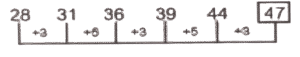 श्रृंखला (भाग-X)Total Questions: 5041. ZAM, XCK, VEI, TGG, ? [SSC CHSL 09/08/2023 (1st Shift)](a) SHH(b) RIH(c) RIE(d) SITCorrect Answer: (c) RIESolution:42. BYM, CWL, DUK, ESJ, ? [SSC CHSL 09/08/2023 (1st Shift)](a) FQI(b) FRI(c) FQG(d) FRGCorrect Answer: (a) FQISolution:43. DT 35, EU 33, ?, GW 29, HX 27 [SSC CHSL 09/08/2023 (1st Shift)](a) EX 30(b) GV 33(c) EW 32(d) FV 31Correct Answer: (d) FV 31Solution:44. RD_W S_MS TZP_ U_SK _VVG [SSC CHSL 09/08/2023 (2nd Shift)](a) KAOYV(b) GAOZU(c) JBOXV(d) KBNXUCorrect Answer: (c) JBOXVSolution:45. 2, 5, 10, 17, 26, 37, 50, ? [SSC CHSL 09/08/2023 (2nd Shift)](a) 67(b) 61(c) 63(d) 65Correct Answer: (d) 65Solution:46. JPW, IRV, HTU, GVT, ? [SSC CHSL 09/08/2023 (2nd Shift)](a) FXS(b) GYS(c) GYR(d) HXRCorrect Answer: (a) FXSSolution:47. IBTW, JCSV,?, LEQT [SSC CHSL 09/08/2023 (3rd Shift)](a) JCCS(b) IBWP(c) KDTW(d) KDRUCorrect Answer: (d) KDRUSolution:48. 28, 31, 36, 39, 44, ? [SSC CHSL 09/08/2023 (3rd Shift)](a) 49(b) 51(c) 48(d) 47Correct Answer: (d) 47Solution:49. P_S_T_P_ _PT_ _T_P_S [SSC CHSL 09/08/2023 (3rd Shift)](a) PTSPTSSPT(b) PPTSSTPST(c) TPSTPSTSS(d) TPSTSSPSTCorrect Answer: (d) TPSTSSPSTSolution:50. AN 37, ? , EH 50, GE 58, IB 67 [SSC CHSL 09/08/2023 (4th Shift)](a) DL 42(b) DI 45(c) CK 43(d) CL 44Correct Answer: (c) CK 43Solution:Submit Quiz« Previous12345