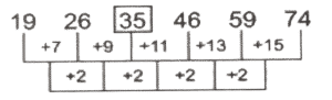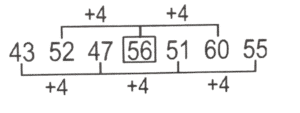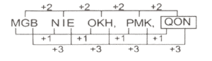 श्रृंखला (भाग-XII)Total Questions: 501. OTLN, MSJM, KRHL, IQFK, ? [SSC CGL 14/07/2023 (4th shift)](a) HPDK(b) GQDJ(c) GPDJ(d) GPDKCorrect Answer: (c) GPDJSolution:2. 19, 26, ?, 46, 59, 74 [SSC CGL 17/07/2023 (1st shift)](a) 33(b) 30(c) 35(d) 32Correct Answer: (c) 35Solution:3. 512, 508, 500, 496,?, 484 [SSC CGL 17/07/2023 (2nd shift)](a) 480(b) 484(c) 488(d) 490Correct Answer: (c) 488Solution:4. C_ _SRCNP _ _ _N_SRC_PS_ [SSC CGL 17/07/2023 (2nd shift)](a) PSNRCPNR(b) NPSRCPRN(c) NPSRPCRN(d) NPSRCPNRCorrect Answer: (d) NPSRCPNRSolution:5. 43, 52, 47, ?, 51, 60, 55 [SSC CGL 17/07/2023 (2nd shift)](a) 56(b) 53(c) 49(d) 57Correct Answer: (a) 56Solution:6. MPKL, NRLN, OTMP, PVNR, ? [SSC CGL 17/07/2023 (2nd shift)](a) QXOT(b) QXPT(c) QYPT(d) QXPUCorrect Answer: (a) QXOTSolution:7. 80, 73, 64, 53, 40, ? [SSC CGL 17/07/2023 (3rd shift](a) 19(b) 25(c) 33(d) 23Correct Answer: (b) 25Solution:8. MGB, NIE, OKH, PMK,? [SSC CGL 17/07/2023 (3rd shift)](a) QON(b) PQJ(c) OQN(d) OPKCorrect Answer: (a) QONSolution:9. 82, 79, 71, ?, 60, 57, 49 [SSC CGL 17/07/2023 (3rd shift)](a) 61(b) 63(c) 68(d) 62Correct Answer: (c) 68Solution:10. PRKY_LDP_ _YOLD_RKYO_DPRK_ _LD [SSC CGL 17/07/2023 (3rd shift)](a) ORKLPOD(b) ORPKYLP(c) ORPLKYO(d) ORKPLYOCorrect Answer: (d) ORKPLYOSolution:Submit Quiz12345Next »
