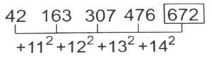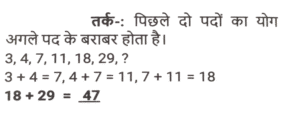 श्रृंखला (भाग-XIV)Total Questions: 5011. RQMR, YVVC, FAEN, MFNY, ? [SSC CHSL 10/03/2023 (4th Shift)](a) TKWJ(b) TKWO(c) TMQM(d) TMNOCorrect Answer: (a) TKWJSolution:12. 59, 118, 354, 708, 2124, ? [SSC CHSL 13/03/2023 (1st Shift)](a) 4350(b) 4248(c) 4148(d) 4250Correct Answer: (b) 4248Solution:13. ANM, GWZ, MFM, SOZ, ? [SSC CHSL 13/03/2023 (1st Shift)](a) YYM(b) YXM(c) NQR(d) YXRCorrect Answer: (b) YXMSolution:14. 3, 4, 7, 11, 18, 29, ? [SSC CHSL 13/03/2023 (2nd Shift)](a) 48(b) 46(c) 45(d) 47Correct Answer: (d) 47Solution:15. WX_WW_ _Y_W_W X X_Y_Y [SSC CHSL 13/03/2023 (2nd Shift)](a) WYXYWXY(b) YXYYWXX(c) WXXYXWW(d) YXXYWXYCorrect Answer: (d) YXXYWXYSolution:16. vu_uvuw_vu [SSC CHSL 13/03/2023 (3rd Shift)](a) uwuw(b) uvuw(c) wwww(d) vvuuCorrect Answer: (a) uwuwSolution:17. 46, 51, 76, 201, 826, ? [SSC CHSL 13/03/2023 (3rd Shift)](a) 3757(b) 3951(c) 4853(d) 3631Correct Answer: (b) 3951Solution:18. 42, 163, 307, 476, ? [SSC CHSL 13/03/2023 (4th Shift)](a) 648(b) 632(c) 684(d) 672Correct Answer: (d) 672Solution:19. jtm _ r _ jt _ prs _ tmpr _ j _ mprs [ SSC CHSL 14/03/2023 (4th Shift)](a) psmjst(b) pssjst(c) psmjts(d) pmsjstCorrect Answer: (a) psmjstSolution:20. mc_bcm_cbbc_m_bbcm [SSC CHSL 15/03/2023 (1st Shift)](a) mccb(b) bmmc(c) cbmb(d) bcmbCorrect Answer: (b) bmmcSolution:Submit Quiz« Previous12345Next »