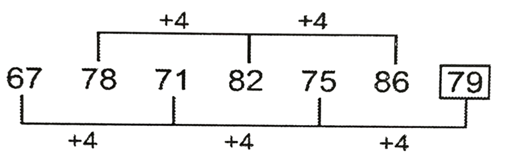 श्रृंखला (भाग-XV)Total Questions: 5021. 67, 78, 71, 82, 75, 86, ? [SSC CGL 06/12/2022 (1st Shift)](a) 97(b) 92(c) 84(d) 79Correct Answer: (d) 79Solution:22. QRM, PWD, OBU, NGL, ? [SSC CGL 06/12/2022 (1st Shift)](a) MLC(b) MQR(c) MRS(d) MCLCorrect Answer: (a) MLCSolution:23. 121, 169, 289, ?, 529, 841 [SSC CGL 06/12/2022 (2nd Shift)](a) 484(b) 361(c) 343(d) 441Correct Answer: (b) 361Solution:24. ABCD, FVJV, KPQN, PJXF, ? [SSC CGL 06/12/2022 (4th Shift)](a) UDQE(b) RQTS(c) UDEX(d) EQRTCorrect Answer: (c) UDEXSolution:25. NTS, JZF, FFS, BLF, ? [SSC CGL 07/12/2022 (1st Shift)](a) XMO(b) XMQ(c) XRS(d) XSMCorrect Answer: (c) XRSSolution:26. NMTS, SGAK, XAHC, CUOU, ? [SSC CGL 07/12/2022 (2nd Shift)](a) OMAR(b) HVMO(c) HOVM(d) RMNOCorrect Answer: (c) HOVMSolution:27. 286, 192, 263, 176, 240, 160, 217, 144, ? [SSC CGL 07/12/2022 (2nd Shift)](a) 186(b) 194(c) 165(d) 190Correct Answer: (b) 194Solution:28. XDNC, VGOE, ?, RMQI, PPRK [SSC CGL 07/12/2022 (3rd Shift)](a) TJRG(b) TKPG(c) TJPG(d) TJQGCorrect Answer: (c) TJPGSolution:29. NTRQ, GOIF, ZJZU, SEQJ, ? [SSC CGL 07/12/2022 (3rd Shift)](a) LZHY(b) QNRT(c) LMRC(d) LXYQCorrect Answer: (a) LZHYSolution:30. MOR, SXE, YGR, EPE, ? [SSC CGL 07/12/2022 (4th Shift)](a) KYR(b) NRQ(c) NRM(d) KMRCorrect Answer: (a) KYRSolution:Submit Quiz« Previous12345Next »